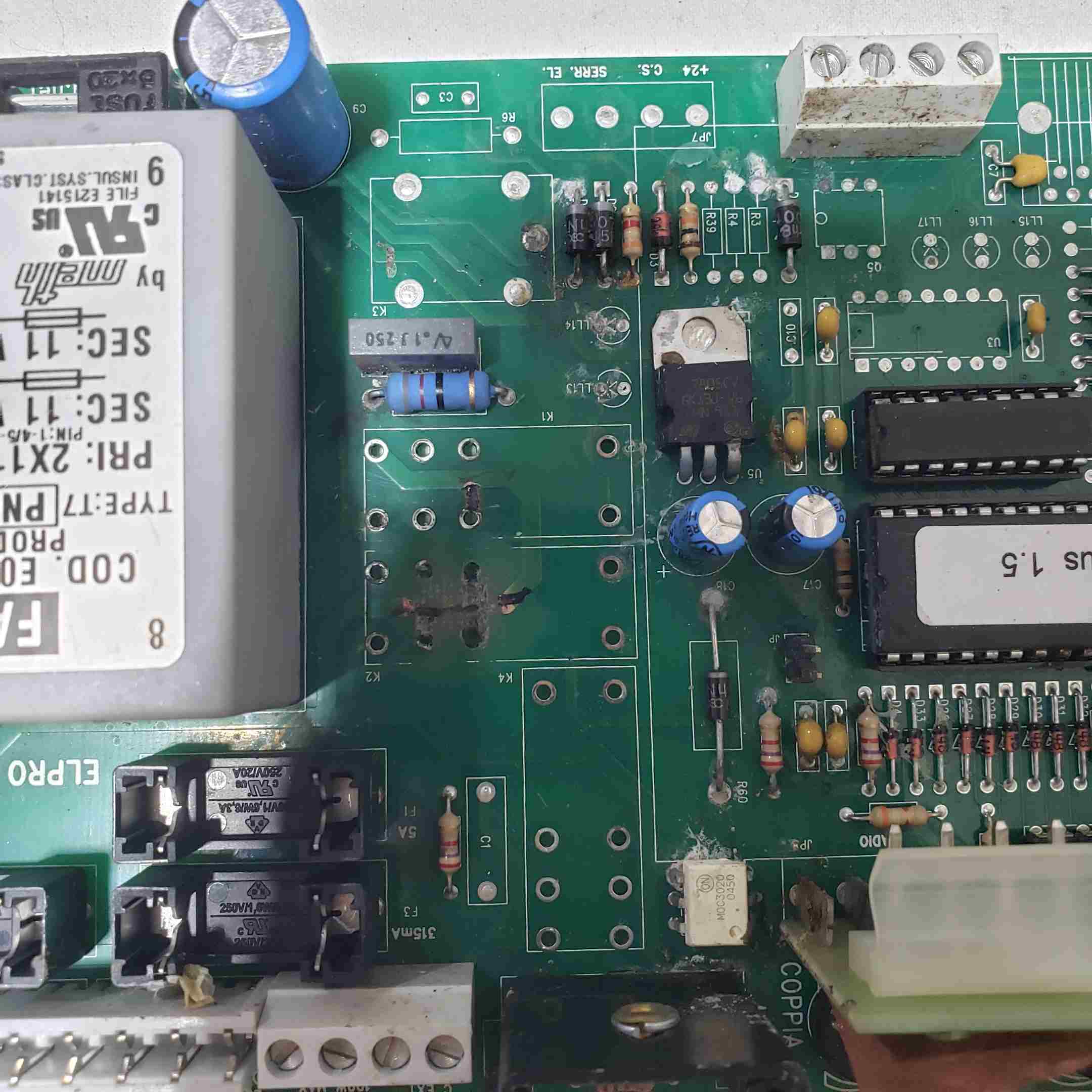 Ciao martin1984, https://www.automationline.it/wp-content/uploads/2020/08/istr_girri130.pdf https://www.giuseppecolantuono.it/Girri130/es_girri_130.pdf https://www.olivaautomatismos.com/wp-content/uploads/2024/08/recambios-Girri-130.pdf Ma hai tolto tu i relè, oppure sono in un altro punto della scheda? Puoi postare le foto della scheda intera fronte e retro?! Non so i valori precisi, ma sembrano corretti essendo le due marce verso il comune entrambi di 15 Ohm e la somma dei due di circa 30 Ohm. - Oggi