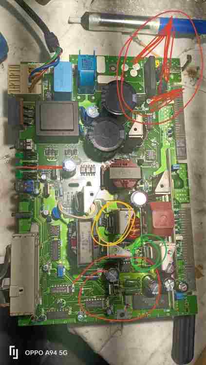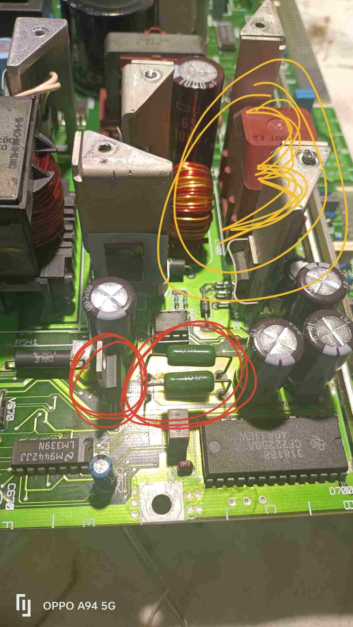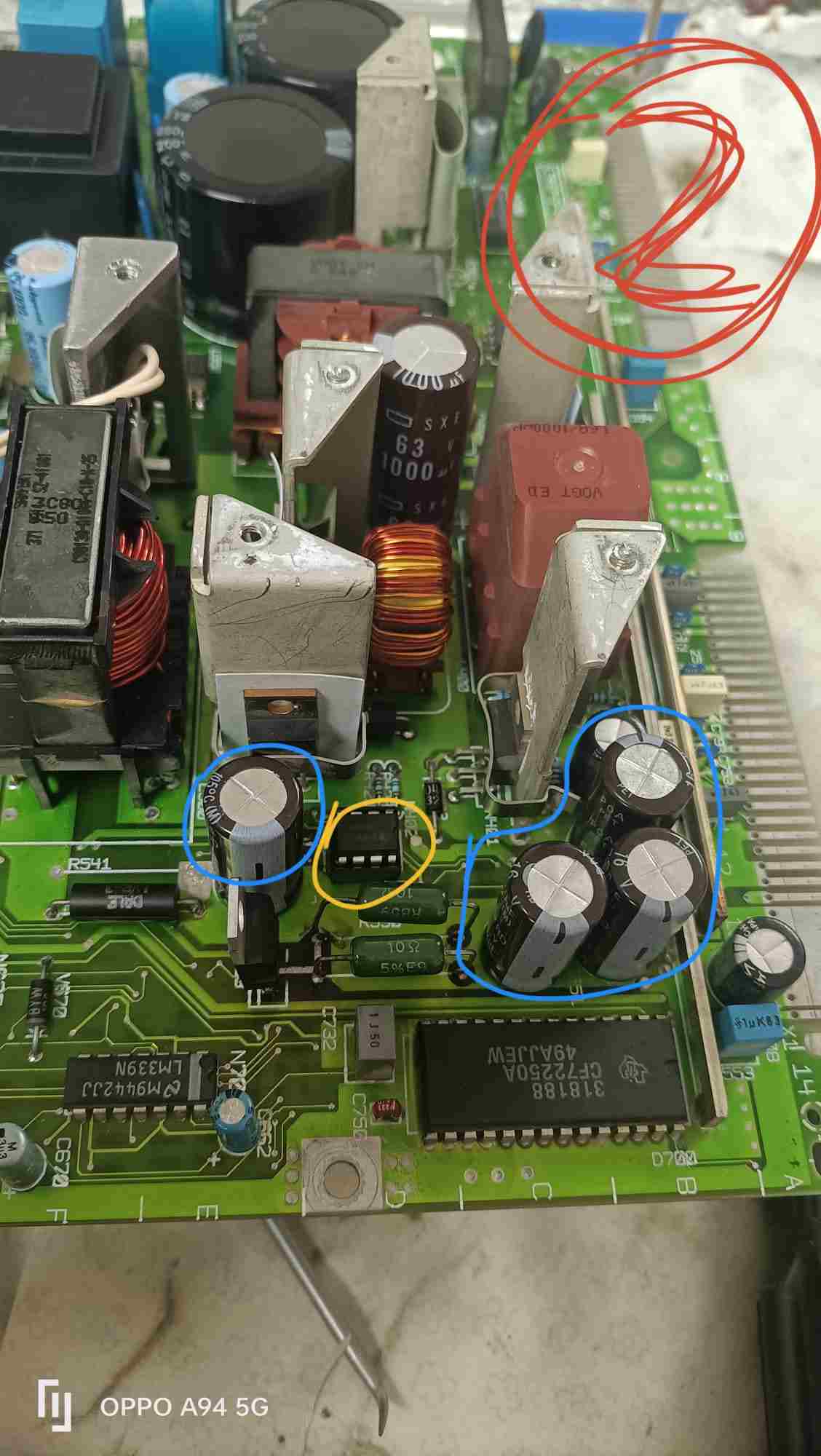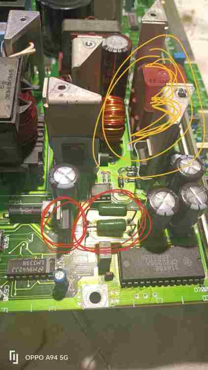 Buongiorno a tutti! Premessa, se non fosse urgente ed importante e vi fosse la possibilità di sostituzione sistema a stretto giro, non sarei qui a chiedere una mano. Metto anche in conto che non ne potremmo ricavare nulla, ma ci provo. In allegato le foto della scheda del Plc in oggetto. Il guasto, forti assorbimenti che fanno cadere la tensione, anche senza carico. Smontato e portato il laboratorio. Ho controllato e sostituito i 4 cond da 4700uf che avevano valori bassi più due che avevano rilasciato materiale, anche senza essersi gonfiati come al solito, della foto 2 anche il doppio operazionale. Ricostruendo il circuito seguendo le piste (dato che non ho trovato uno schema) nella foto 1 cerchiato giallo vi è un l4960 responsabile della creazione della 5.2Vdc, e dal pin 7 non ho alcuna tensione di uscita. Messo su una bread board e ricostruito il circuito test come da esempi applicazioni nel datasheet non ho uscita di tensione. Sono in attesa del nuovo componente. Sempre nella foto 1 cerchiato in verde vi è un L200 responsabile della creazione della 24Vdc che funziona e non vi sono problemi. Ma la cosa che più mi sta tormentando sono quelle due resistenza da 10 ohm verdi cerchiate di rosso. Arrivano a 140gradi. Sono sul circuito della 5V e chiudono tramite il BDX53 che ho controllato e per scrupolo sostituito, ma nulla. Quindi i problemi sono due, l'assenza della 5.2Vdc ( ma sono in attesa del componente) e il surriscaldamento delle due resistenze sulla 5VDC. Non ho altro ne di annerito ne di bruciato ne di saltato, nulla. Se ci fosse lo schema elettrico sarebbe tutto 10 volte più facile, ma non l'ho trovato. Se qualcuno di voi ha avuto a che fare o può avanzare un proposta, ne sarò grato.