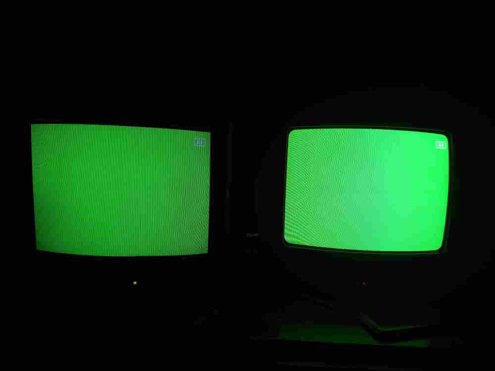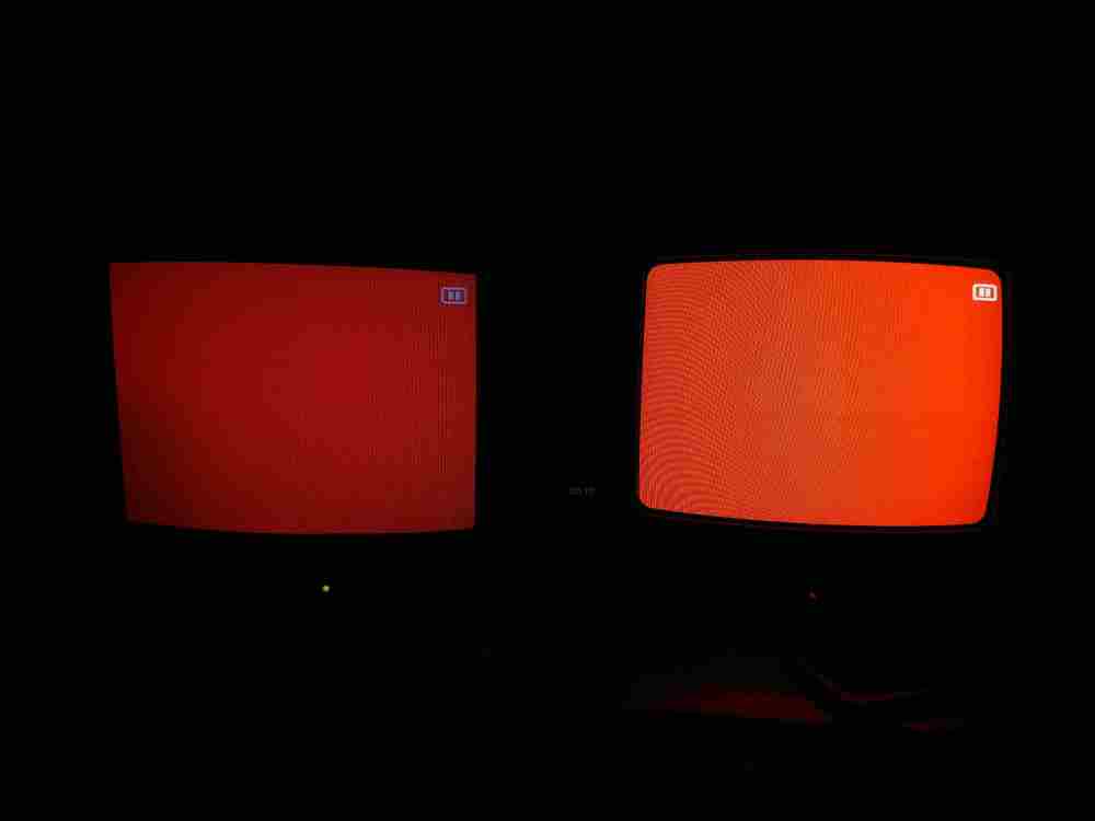 Ho provato a battere sul collo del cinescopio ma non succede niente . Ho cercato un altra Tv crt che ho a casa sempre piccola 14 pollici Sinudine della fine degli anni 90, l’ho usata tantissimo per più di 10 anni , ormai saranno 15 anni che non la accendo seriamente solo una volta ogni tanto per vedere se funziona, le ho affiancate per spiegarti bene la differenza che c’è ora tra le due e fino alla settimana scorsa era più luminosa la Sony . Il bianco e quello che salta più all’occhio, prima quello Sony era un bianco freddo ultra brillante adesso sono spenti, i colori sono belli pieni e uniformi però mancano di brillantezza. A sinistra il Sony , adestra Sinudine Il bianco non è così grigio ma poco ci manca è un po’ falsato dalla camera