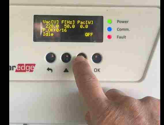 Buongiorno ho installato un vecchio inverter usato della solaredge se4000h (con display) con 15 pannelli 250w e suoi ottimizzatori dopo averlo installato, seguendo la procedura di installazione che mi viene chiesta sul manuale (riconoscimento ottimizzatori) : premere per 10 sec pulsante on in modalità off) non succede/appare nulla. dove sbaglio? esiste un' app (per non installatori) per collegare/dialogare con l'inverter? e capire se sia un problema di inverter o altro? grazie