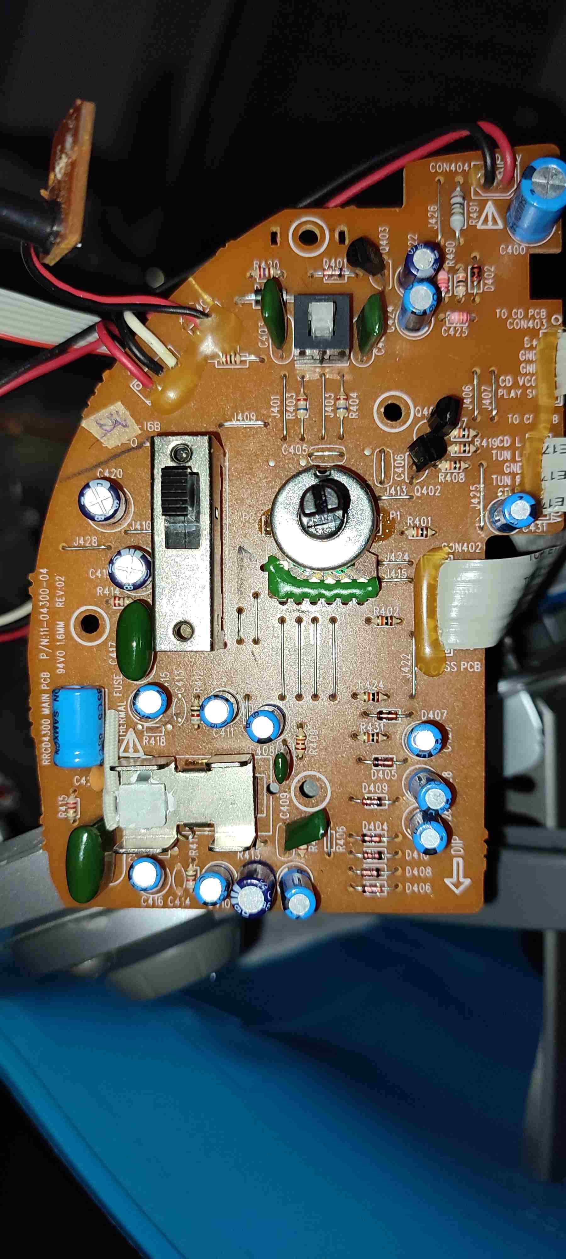 Si, ho controllato bene e la massa è al centro tra i due condensatori verdi, vicino all'interruttore che amplifica i toni bassi e arriva fino alla piazzola 2 del PCB (2 da sinistra, guardando la foto allegata) dove stava saldato il potenziometro originale. Il problema è che non sono capace a capire sul potenziometro che ho acquistato quali siano le masse, gli Ingressi e le Uscite, perché il venditore ancora non mi manda il pin-out e io da solo non riesco a ricavarmelo. GRAZIE. -