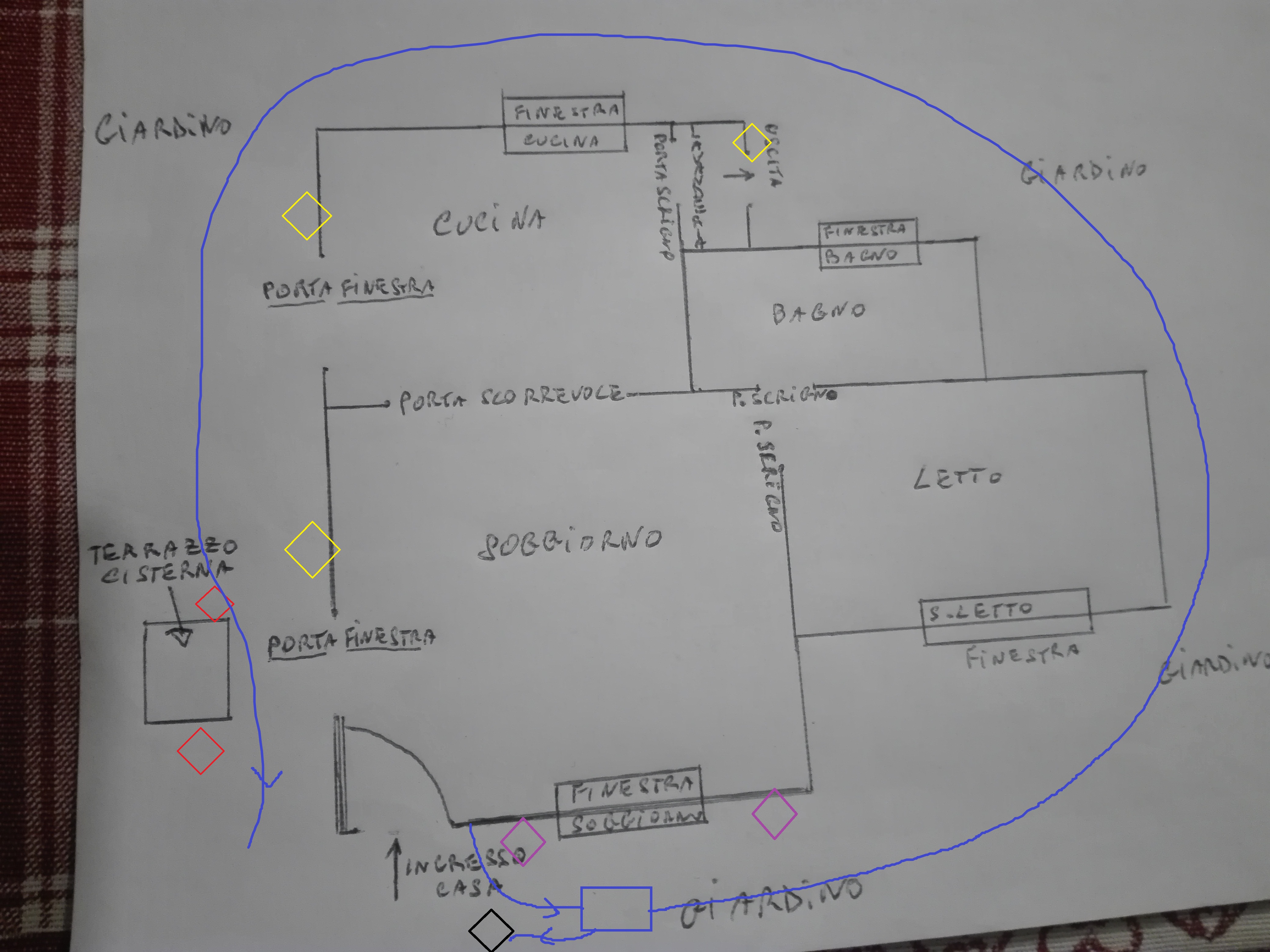 Francesco2 Inserita: 29 marzo 2021 Autore Segnala Inserita: 29 marzo 2021 7 ore fa, Fede11046 scrisse: Ciao, dipende anche come è impostata la casa, ovvero: Ogni stanza nella quale vuoi prevedere l'interruttore ha una porta finestra che dal sul giardino? Oppure ha solo una finestra? Ti servono delle luci di cortesia per tutta la notte? Hai bisogno di alcune luci "spot" per illuminare un albero oppure una parte di giardino solo per fini estetici ad esempio fino a mezzanotte? Se rispondi a queste domande ti posso dire come la farei io, e magari ti viene in mente qualcosa a cui non avevi pensato, ma il "capocantiere" rimani comunque tu! Attendo risposta! Ciao! Ciao Fede, grazie, in pratica l'ingresso di casa ha un soggiorno che appena entrato, a sinistra vi è una porta finestra che va su uno spiazzale giardino con un vecchio pozzo ; subito a destra dalla porta di ingresso casa ho una finestra che guarda il davanti casa.. Andando avanti nel soggiorno, ho la cucina, divisa dal soggiorno da una porta scorrevole, e la cucina ha anch'essa sulla sinistra la porta finestra che vede lo stesso spiazzale giardino del soggiorno col pozzo. Entrando dal soggiorno in cucina ( che ha sopra il rubinetto una finestra), sulla destra ho la lavanderia piccola separata dalla cucina da una porta scrigno , e la lavanderia è appena profonda 65 cm per una lavatrice da un lato e dall'atro per una pila; entrando in lavanderia ho quindi poi una porta per l'uscita in giardino. La stanza da letto si trova entrando nel soggiorno, poi sulla destra, divisa dal soggiorno da una porta scrigno, e dentro la stanza da letto vi è una finestra che guarda l'ingresso di casa. Il bagnetto ha anch'esso una finestra che guarda il giardino e si trova tra il soggiorno, la lavanderia e la stanza da letto. In pratica 65 m2 di casa, al centro di 2000 m2 di terreno, e le luci mi servono primariamente come illuminazione per tutta la notte; qualche luce estetica comunque la metterei. Forse un disegno sarebbe stato più adatto. Grazie dei consigli.