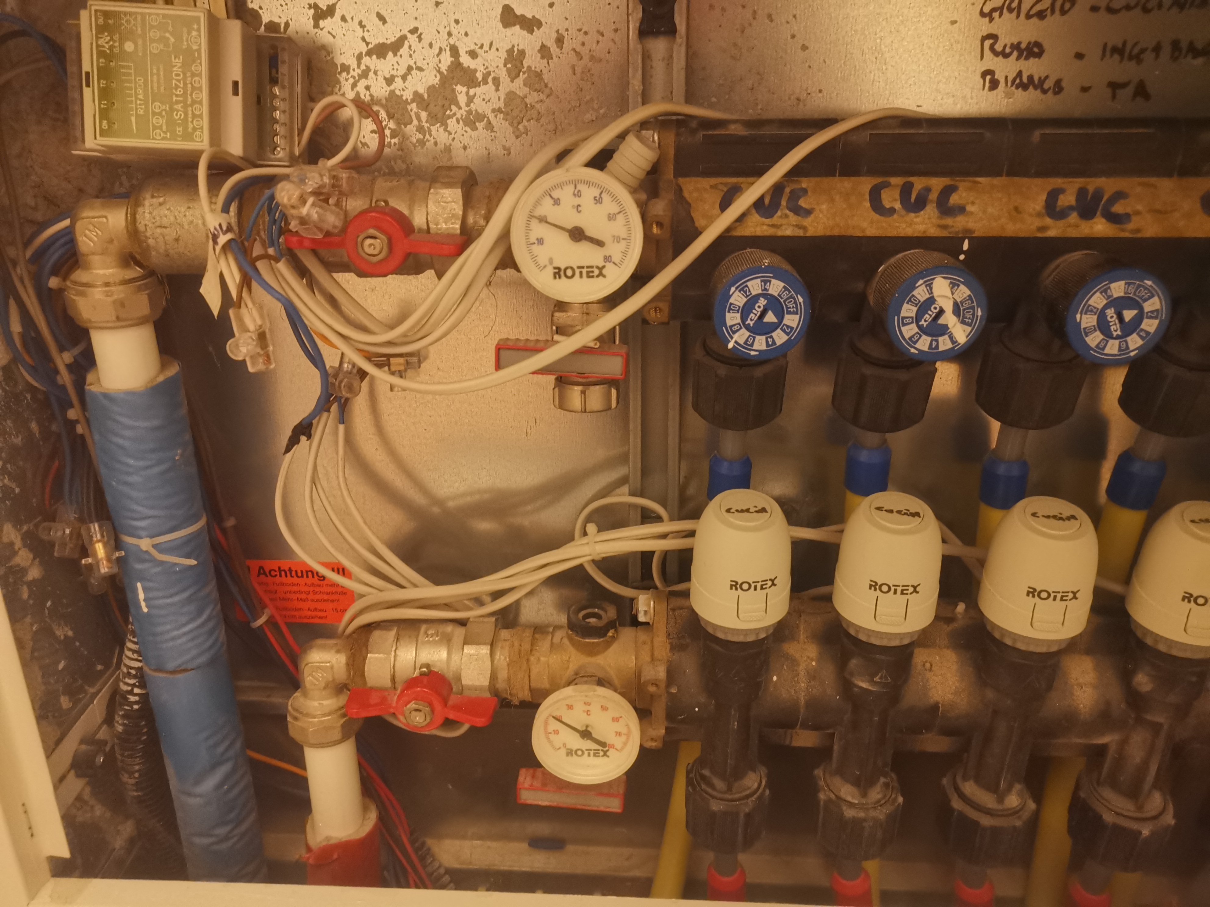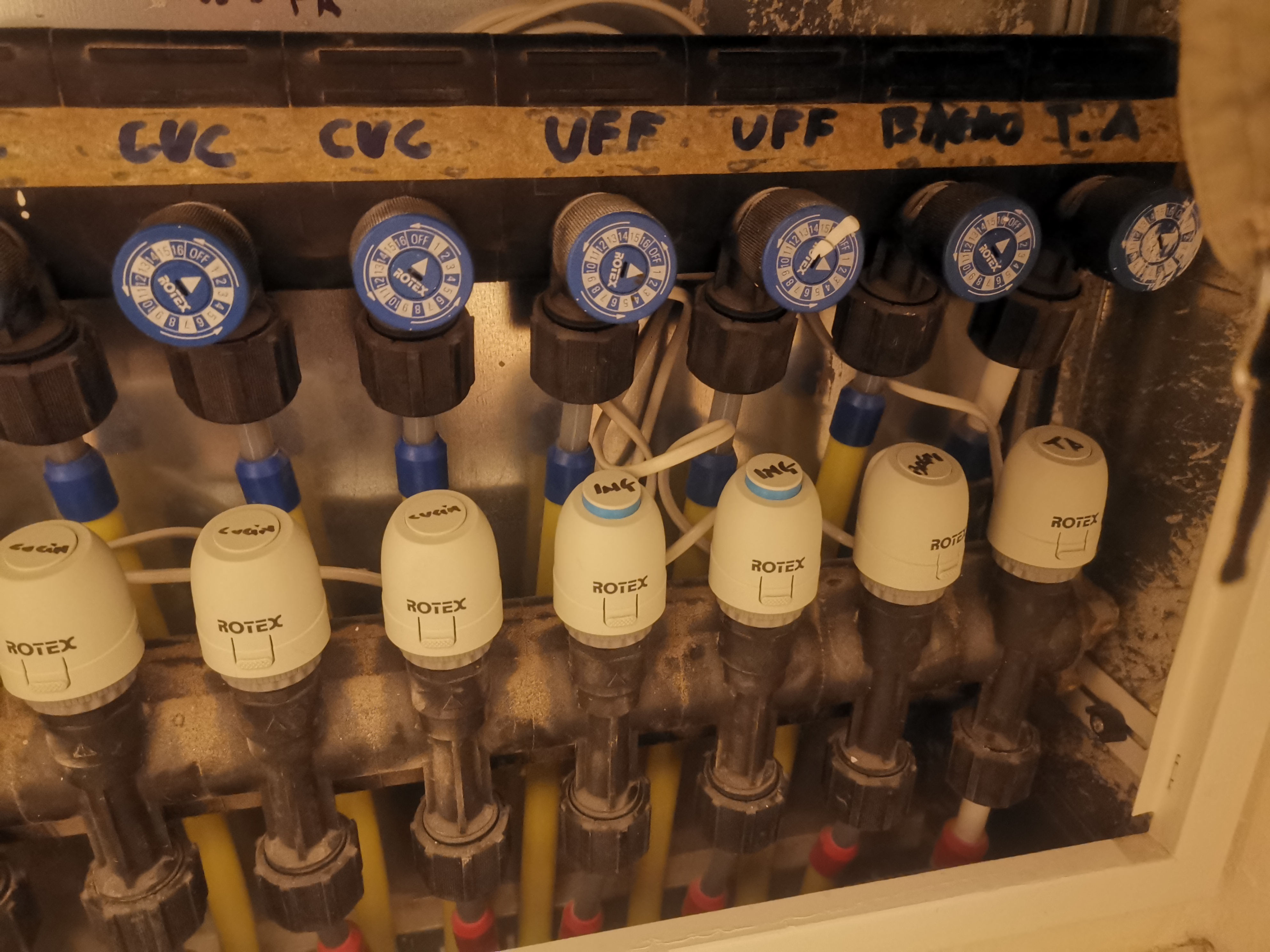 Questo è il collettore dei radiatori e convettori della taverna, anche quì ci sono testine sui ritorni.. cavoli ma quanti termostati hai fra tutti i piani