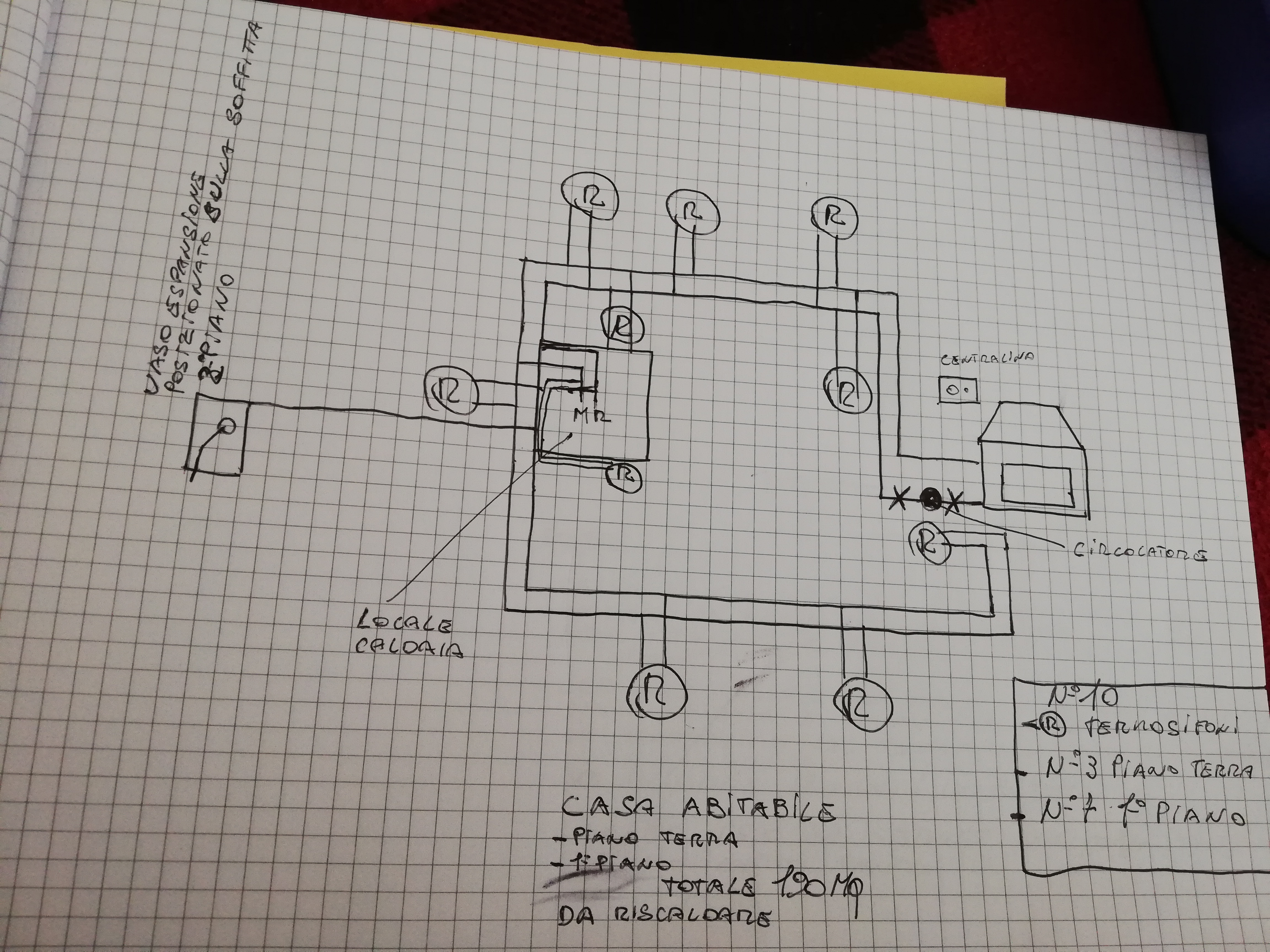 Paolo1980 Inserito: 13 maggio 2021 Segnala Inserito: 13 maggio 2021 Salve questo è uno schema dell impianto termico di casa. Volevo sapere se qualcuno esperto del mestiere mi poteva spiegare che potenza di caldaia posso fare istallare e spiegarmi come fare per separare l'impianto termocamino con quello della caldaia e anche come fare i collegamenti del acqua sanitaria prodotta dal termocamino e centralina termocamino dove e come va collegata insomma con un po' di pazienza di spiegarmi un po tutto. Io ho visto su internet qualche schema ma non ho capito tanto. Scusatemi per tutte queste domande.