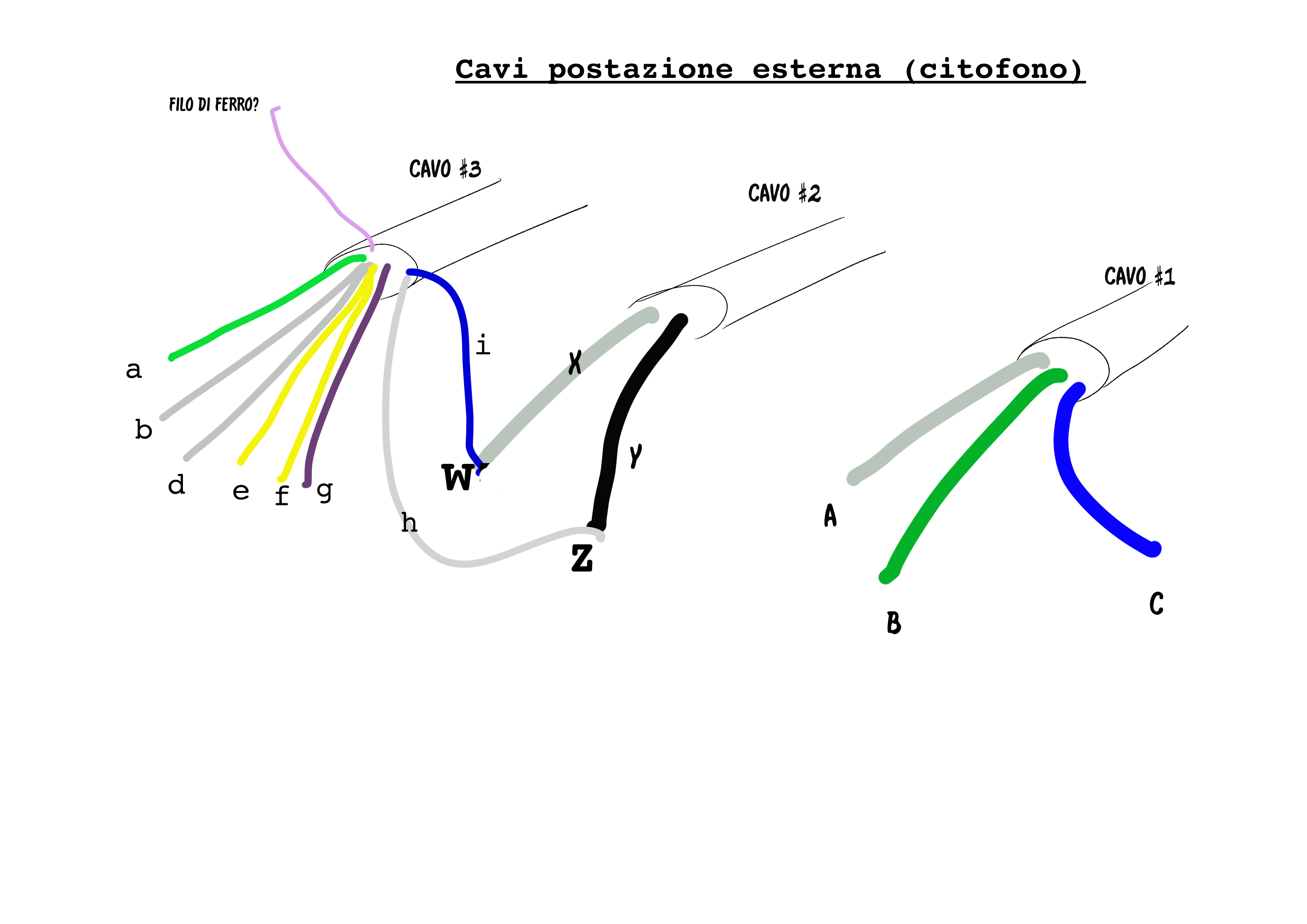 Rod War Inserita: 31 maggio 2021 Autore Segnala Inserita: 31 maggio 2021 il 24/5/2021 at 00:04 , ROBY 73 scrisse: Se guardi lo schema come ti ho già postato fin dall'inizio e ti aggiungo anche questo del 1145/500: https://www.smartsystem.ro/uploads/docs/218/libret de instalare s2 miro audio urmet 3.pdf Quindi se il cancello ed i campanelli funzionano bene allora se guardi gli schemi. - i morsetti 1 e 2 del posto esterno vanno direttamente ai morsetti 1 e 2 dei citofoni interni, (naturalmente ci saranno delle giunzioni in giro per casa che vanno nei vari citofoni, ma dovresti trovarli anche in zona alimentatore). Sul posto esterno inizialmente collega il morsetto "1" e non "1A" (1A lascialo libero, di solito è dedicato agli impianti con citofoni 1131 / 1132 con chiamata elettronica) che vedrai eventualmente se fosse necessario cambiarlo se non senti bene - Poi i morsetti "-" e "+" del posto esterno vanno direttamente ai morsetti "-6" e "+6" dell'alimentatore e sei apposto. Inoltre vedendo la foto dell'alimentatore potrei presumere (ma è un mio pensiero, non è detto che sia così), che i fili grossi bianco, verde e rosso potrebbero essere il "tuo" cavo #1 con "a,b,c", verifica se è così. Grazie mille di questa spiegazione dettagliata, ora soltanto mi manca sapere, IN MODO SICURO, quali fili sono quelli che dovrei collegare come da te spiegato, ossia quali sono 0, 6 e 12... Una ultima domanda: nel caso sbagliassi a collegare i fili potrei bruciare il nuovo PARLA/ASCOLTA? Grazie ancora.
