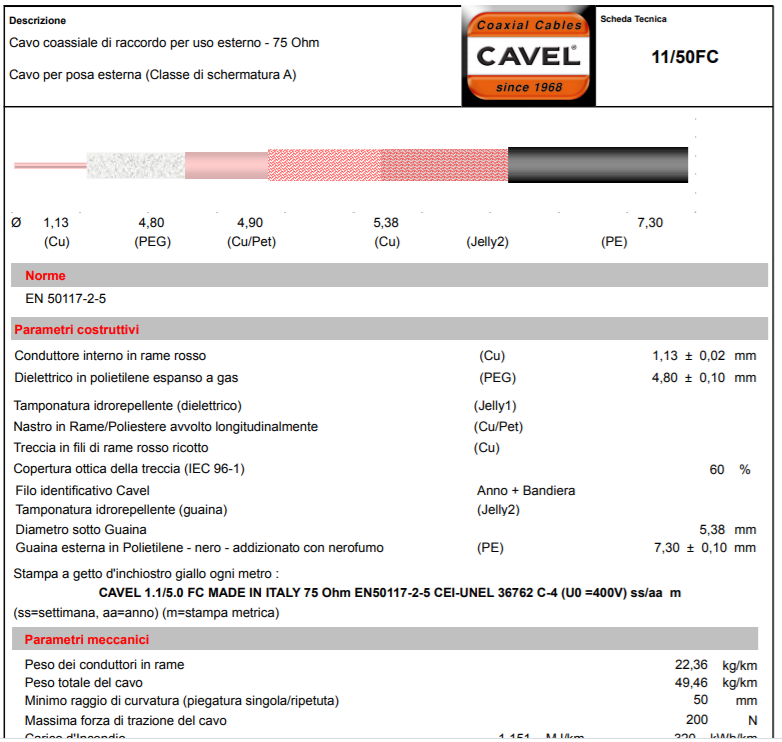 lorenet74 Inserita: 25 giugno 2021 Autore Segnala Inserita: 25 giugno 2021 2 minuti fa, snipermosin scrisse: Non conoscendo sigla e condizione è difficile pronunciarsi, ma ad oggi è molto conveniente , quasi obbligatorio, usare cavi in classe di schermatura A. E te pareva....non sanno come venderlo, oramai conoscono solo quello. Idem come sopra, sarebbe il caso che una tratta così lunga venga fatta con un "signor" cavo da 7 mm ok, per ora va bene così. Ma vedi di fare le prove consigliate sopra. Per il tratto di 5 metri parzialmente all'esterno in sostituzione di quello tutto usurato (si apriva la guaina al solo maneggiarlo ed era molto rigido) ho usato questo nell'allegato.