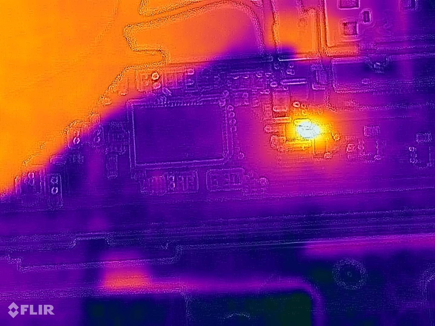 ..di seguito le foto fatte con la termo (seguite da quella normale dello stesso punto); stò perdendo le speranze, non per causa vostra, anzi, non finirò mai di ringraziarvi, ho messo da parte altre utili info, ma per via del fatto che mi convinco sia un problema legato  a qualcuno di quei chips innolux, e considerata la difficoltà incontrata solo nel dissaldare e poi rimettere a posto un semplice condensatore, ritengo oltre le mia capacità togliere uno di quei chips, fosse anche l'UX5 che ha 'solo' 6 pin...