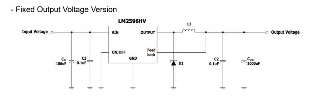 RiccardoZ Inserita: 27 ottobre 2021 Autore Segnala Inserita: 27 ottobre 2021 Buonasera ragazzi, Riprendo oggi il problema che avevamo affrontato un po' di tempo fa, continuando con il progetto dello step down. Alla fine ho deciso di utilizzare un LM2596HVGR - 12 in modo tale da ridurre la componentistica da aggiungere, per permettere il funzionamento dello step down come consiglaito da @gabri-z. Nel datasheet consigliano questa configurazione, tuttavia non vengono riportate informazioni riguardanti l'induttore. https://datasheet.lcsc.com/lcsc/2006151006_HTC-Korea-TAEJIN-Tech-LM2596HVGR-12_C596340.pdf Per caso riuscite a darmi qualche informazione in più voi? Come condensatori e diodi avete particolari consigli da propormi? Grazie in anticipo