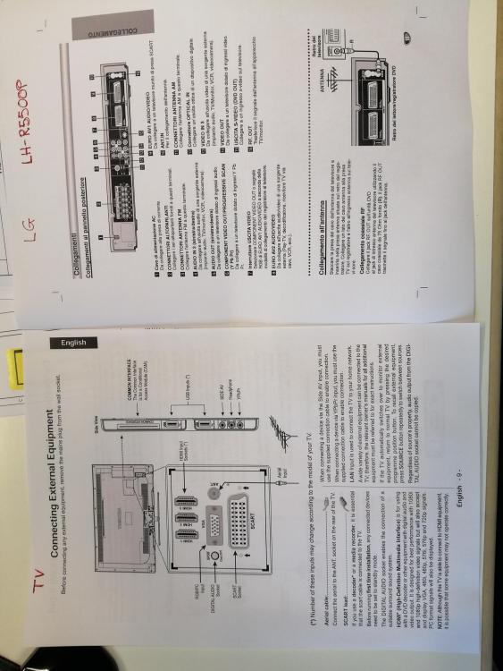 Pablito67 Inserito: 16 ottobre 2021 Segnala Inserito: 16 ottobre 2021 Ho un vecchio lettore/registratore dvd home thatre LH-R55OOP, vorrei utilizzarlo solo come amplificatore collegato a TV in modo da riutilizzare i diffusori che hanno ancora un suono fantastico. ora riesco a farlo solo funzionare solo come lettore dvd e radio con i diffusori collegati, vorrei utilizzarlo in sostituzione all'audio tv ma non riesco a capire se possibile e il collegamento da fare. In pratica vorrei accendere tv e utilizzare i diffusori collegati al lettore. Il lettore è vecchiotto sintonizzava all'epoca canali analogici. Ho allegato connettori che ho ha disposizione per la TV. spero possiate aiutarmi grazie