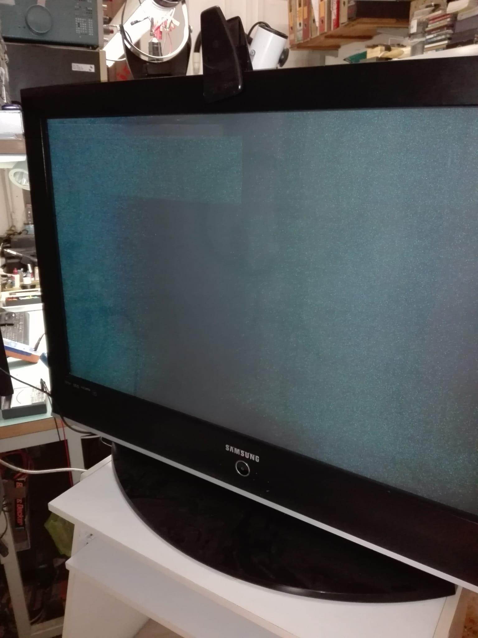Riccardo Ottaviucci Inserita: 3 febbraio 2022 Autore Segnala Inserita: 3 febbraio 2022 Telenovela 4° puntata Sono ad un punto morto. Alimentando a 5V stabilizzati tutto il carico di Vstby, staccando ovviamente il diodo DB864 , il TV se ne accorge non so come e ciclicamente il relè interviene con cadenze brevi di uno o due secondi.Forse il lato primario del circuito di stby in qualche modo risente della mancanza di carico sul secondario. Adesso che ci penso ci posso mettere un carico per esempio una lampada da 6V x moto e riprovare la simulazione. Lo farò. Prima della prova ho rimesso la RB861 originale. Rimontato il trimmer e ricollegato il DB864, il TV si accende con l'immagine neve verde fotografata, ogni tanto compare nitido il menu a colori che per un po' si può modificare,la barra del volume che varia e poi sparisce senza motivo e la casella di stato dei programmi in alto a SX.. Se stacco le alimentazioni ai due buffer non cambia nulla. Non ho abbastanza esperienza e casistiche per sapere quale sarebbe il problema in caso di buffer o logic board difettosi (per questo considero questo intervento una fucina didattica). La difficoltà di fare sostituzioni,misure sull'alimentatore e sulle altre schede è enorme,vista la complessità anche meccanica della struttura. Questi TV erano fatti per funzionare 8/10 anni senza problemi e poi portati all'isola ecologica al primo guasto. Però la qualità d'immagine in HDMI di un plasma non ha paragone con quella di un lcd,non c'è che dire ed è per questo che mi piacerebbe recuperarlo.