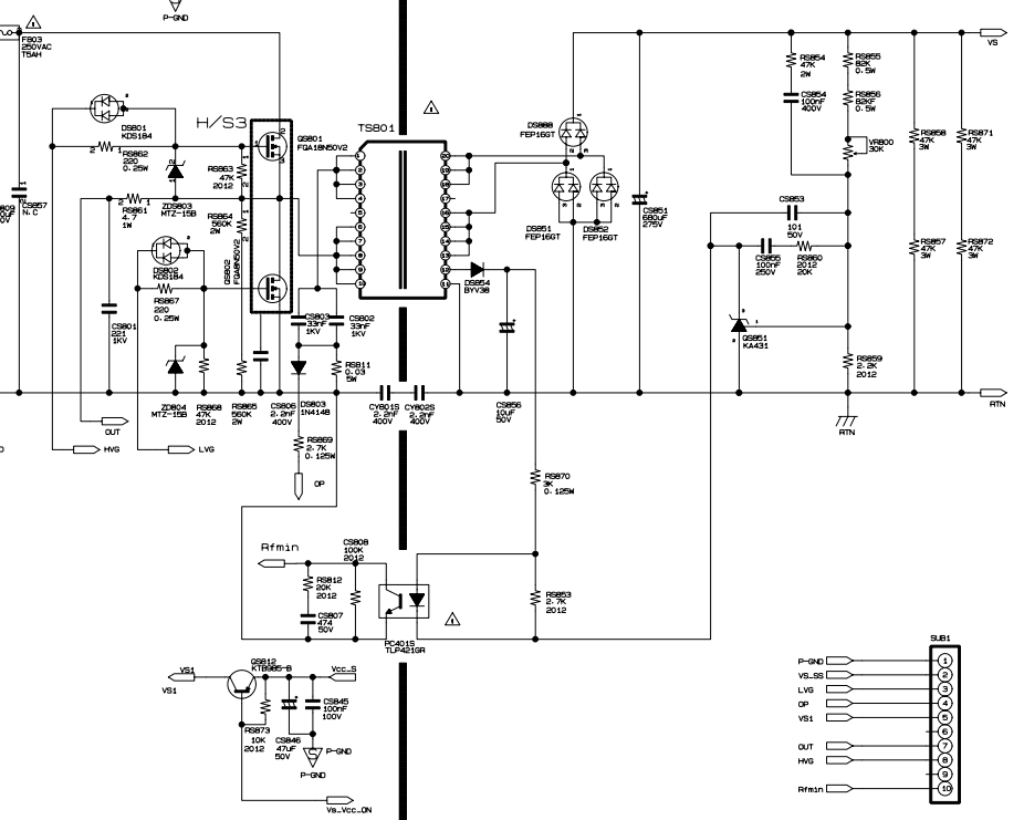 Riccardo Ottaviucci Inserito: 1 febbraio 2022 Segnala Inserito: 1 febbraio 2022 Ho voluto rimettere le mani sul bestione in oggetto accantonato e per il quale avevo giò aperto una discussione tempo fa che deve essere andata in fumo col server. Il TV rimaneva spento e la Vstby che deve essere di 5V è di 3,3V. Dopo innumerevoli controlli ,anche suggeriti non mi ricordo da chi, sono riuscito a riportare artificialmente a 5V la Vstby modificando il valore di RB851 mettendo al suo posto un trimmer da 10 K. Adesso il TV si accende, la VA e tutte le altre basse tensioni ci sono,ma la VS è bassa e instabile (160-175V) contro i 200 che dovrebbe essere. L'effetto è che l'immagine è lattiginosa,verdognola e ogni tanto va in protezione. Ho provato a studiarmi il circuito dell'alimentatore e di tutte le sequenze . Il problema è che la VS,non si regola col trimmer apposito VR800. Ho cambiato fotoaccoppiatore PC401S ,zener programmabile TL431 , il filtro CS851 e verificato le tensioni di alimentazione dell'IC controller U804 (che non ho,dovrei ordinarlo). In pratica la Rfmin non cambia e sembra non agire sull'IC stesso. Anche staccando i carichi di VS,e cioè le schede Y e X sus la tensione sembra sempre bassa,anche se leggermente maggiore (185 V). Non riesco a stabilire se deve essere così o se un malfunzionamento delle stesse schede faccia lavorare male l'alimentatore. Secondo me la Vs deve esserci sempre e stabile poichè non vedo regolazioni in feeback. Lo schema completo della scheda è questo l'aiuto che cerco è quello di qualcuno che vuole studiare in parallelo a me lo schema scambiandoci ipotesi e soluzioni, anche per cercare di capirci qualcosa in più su questa tecnologia (furtunatamente superata)