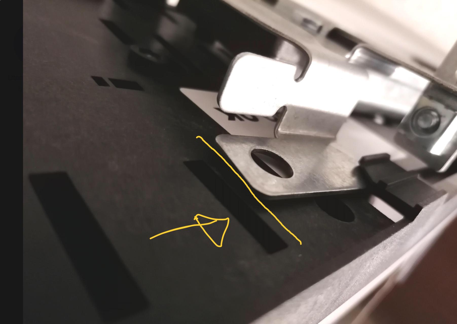 Se non vedo male, la staffa è così lunga da arrivare al punto che ho segnato in giallo in questa foto