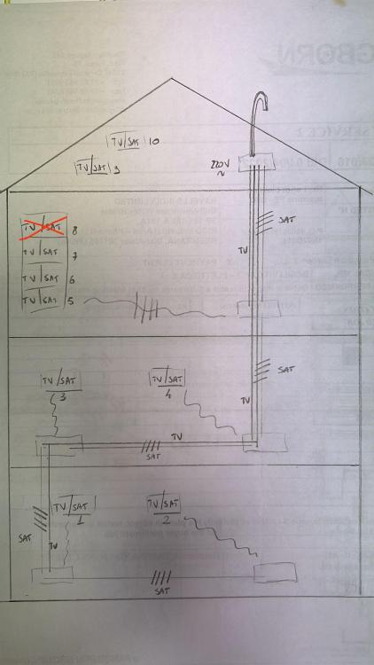 nikoandre95 Inserita: 20 aprile 2022 Autore Segnala Inserita: 20 aprile 2022 (modificato) 55 minuti fa, felix54 ha scritto: Mancano le specifiche delle prese e già che ci sei, riporta le lunghezze indicative dei vari cavi ed il tipo di cavo usato. Non sono sicuro di aver capito quanti cavi DTT e SAT transitano da una scatola all'altra. Non capisco cosa intendi per specifiche delle prese (forse la marca ?) , i cavi utilizzati sono i classici per antenne e parabole, non saprei dire esattamente quale tipo. Come potrai notare le scatole di derivazione sono 6, ogni scatola è suddivisa in Tv e Sat, e sono collegate tutte tra loro attraverso 2 tubi da 32 per la Tv e 2 da 32 per Sat. Il cavo deve ancora essere inserito nei vari tubi, è per questo che prima sto chiedendo di quali componenti principali necessito. Il cavo è coax da 5/6 mm, le prese sono tutte dirette indipendenti modello ( Bit... ) K4202D per SAT e K4202F per TV. Modificato: 20 aprile 2022 da nikoandre95