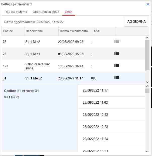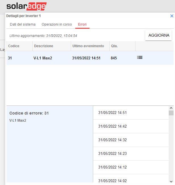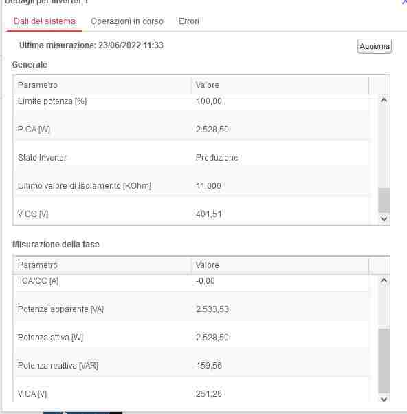 saviothecnic Inserita: 23 giugno 2022 Autore Segnala Inserita: 23 giugno 2022 1 ora fa, saviothecnic ha scritto: No 845 non credo che siano in un giorno ma nel periodo del mese che comunque non sono pochi Si ho fatto verificare sia dall' installatore e fatto ritarare l'inverter anche dal assistenza Remota SolarEdge Ma se mi dite i valori giusto per scrupolo cosi gli confronto con quegli settati ora sull' Inverter Tipo oggi conta 886 quindi 41 errori di quella tipologia da quando scrissi il messaggio Tipo da stamattina e sono solo le 11:40 gia ha fatto quattro distacchi E come vedi da foto sotto ora la CA è di 251,26V altri scarsi due V consentiti dalla CEI e distaccherà nuovamente per 5minuti