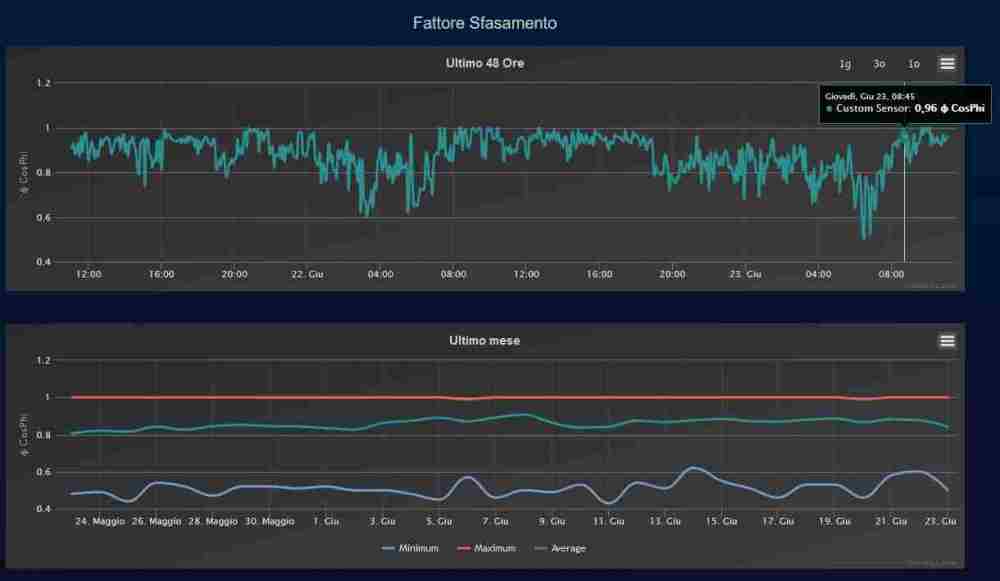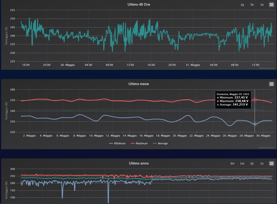saviothecnic Inserita: 23 giugno 2022 Autore Segnala Inserita: 23 giugno 2022 Il 1/6/2022 alle 08:19 , mrgianfranco ha scritto: Salve il rifasamento di un impianto và fatto quando si ha un basso fattore di potenza (cosphi) non capisco cosa centra col tuo problema...per non scendere sotto un valore accettabile di tensione adesso hai il problema dei troppi picchi in salita?ma quando ti hanno fatto le verifiche per installarti il FV non hanno controllato queste cose? Si non so quanto sia precisa ed affidabile la misura la prelevo con degli Shelly EM Ma noto che anche li non ho un bel 1 fisso quindi non so se pensare ad un rifasamento possa aiutare o meno per questa ho messa tra le opzioni. Per rispondere al tuo secondo quesito Sinceramente NO Prima d' installare non hanno fatto verifiche campionate nelle 48h sulle tensioni di casa Ma a dire il vero prima di far installare impianto FV ho interpellato molte ditte ci sono stato quasi un anno a pensarci su e valutare varie proposte E nessuna mi ha detto o proposto di misurare le tensioni prima d' approvare instalalzione dello stesso o meno Hanno solo fatto delle verifiche lato comune e gestore e gse per sapere se vi era ok per installarlo o meno Nella mia zona poi ci sono anche altri impianti FV ma presumo dato che quando ho avuto il problema sono andato a bussare anche a chi lo aveva E dalle risposte che ho avuto secondo me neanche sanno che alla fine il loro inverter non sta andando o si riavvia in contnuazione durante la giornata Non tutti hanno inverter con portale di monitoraggio e vanno li a vedere cosa fa inverter e spulciarsi i log d'errore Sono convinto che molti hanno problematiche simile alla mia ma neanche lo sanno Io per passione e deformazione professionale in seguito ho installato una supervisione Domotica con Domoticz Quindi ho grafici e prelievi e quindi so quando qualcosa va e non va E giornalmente do uno sguardo al portale del inverter per capire come sta andando e sopratutto se sta andando.