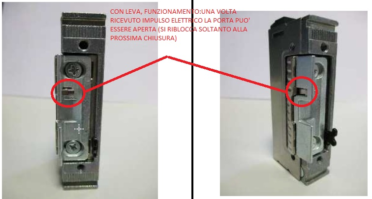 deltaecho Inserita: 29 agosto 2022 Autore Segnala Inserita: 29 agosto 2022 (modificato) 9 ore fa, Peper ha scritto: Quando presumi che rimanga inceppata prova a dare un paio di colpi con la mano e poi azioni il pulsante. Così discriminiamo se e' un problema elettrico o meccanico. Ho provato a dare dei colpi con la mano intorno alla zona della serratura prima di azionare il comando ed ora effettivamente apre. Quindi da come dici dovrebbe essere un problema meccanico? Sappiate comunque che lo scontro elettrico è il terzo che viene montato. Quest'ultimo è venuto giù direttamente col tecnico della casa madre dicendo che nei casi estremi usano questo (ma non so in cosa differisca dai precedenti): ma anche questo non va bene. Quando valutavano la distanza porta-telaio dicevano che c'era necessità di tenerli abbastanza vicini perche quella levetta cerchiata in rosso deve essere tenuta un po' premuta dallo scrocco, ma non troppo vicini per evitare problemi con le dilatazioni termiche (è PVC). Nel frattempo mi hanno risposto quelli della Perry dicendo che un certo riscaldamento del trasformatore, anche a vuoto, per loro è normale. Ho richiamato di nuovo il serramentista, vediamo cosa farà stavolta. Modificato: 29 agosto 2022 da deltaecho