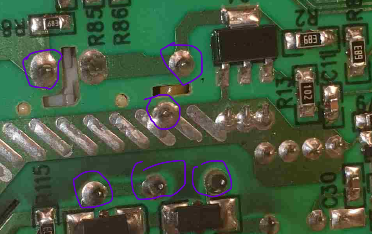 luigi.concorsi Inserita: 28 agosto 2022 Autore Segnala Inserita: 28 agosto 2022 Aspettando che riaprano i negozi ho fatto un po' di test: 1) ho smontato, testato e risaldato tutti gli elettrolitici e le capacità sono tutte ok (un po' più alte di quelle stampate ma entro una tolleranza del 10%). A proposito delle mie saldature vi chiederei di dirmi se ho fatto troppi pasticci o possono andare 2) ho testato la continuità tra i piedini del tiny e tra quelli del trasformatore: I piedini del TNY sono tutti isolati (a parte i 4 sotto che ovviamente sono tutti in continuità tra loro essendo saldati sulla stessa pista). Mi pare strano invece che abbia trovato continuità tra i piedini 1/2 ed il piedino 3 del trasformatore e tra il piedino 5 ed i piedini 6/7. Non avendo la più pallida idea di come siano fatti gli avvolgimenti non so se è normale, ma ad occhio tra il 5 e il 6/7 ci sono quei due diodi SMD marcati come D20 e D19, quindi mi aspettavo di trovarli in qualche modo isolati. Ho testato anche i diodi: I due diodi SMD tra i piedini del trasformatore sembrano a posto: D19 è marcato GD SR mentre D20 è marcato GR 1J: impostando il tester su prova diodi misura 0,5V in un senso e isolato nell'altro. Il diodo D1 (marcato 2U 98) che ieri mi pareva a posto mi segnava 0,5V in un senso e 3V nell'altro: l'ho smontato e ritestato e pare a posto (0,5V in un senso e isolato nell'altro senso). Il mio timore ora è che sia andato in corto il trasformatore e no so come trovare un rimpiazzo.