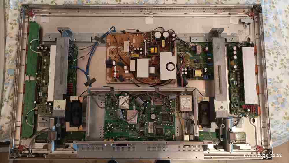 pablito72 Inserito: 9 ottobre 2022 Segnala Inserito: 9 ottobre 2022 (modificato) Salve a tutti, la mia TV 42" ha festeggiato i suo bei 20 anni ma comunque finchè non l'ho sostitituita con un 50" ha sempre acceso e funzionato benissimo, si vedeva un amore, poi purtroppo come detto l'ho sostituita con un nuovo TV TCL 50" e dopo averl tentato di riaccenderla (dopo almeno un mesetto cambiandola di posto), non ne ha voluto più sapere di accendersi, o meglio si accende la spia si sente il relè che attacca ma il quadro non si accende e rimane nero, dietro all'interno vedo i due led accesi al lato nel gruppo di sinstra e quello di destra dove posso cercare il guasto? Tenete presente che non sono proprio un tecnico ma riesco a distinguere un transistor da un condensatore, un diodo da una resistenza. Vi insierisco in basso la foto del TV, se magari non ritenete troppo difficile suggerirmi dove individuare il guasto (dovesse trattarsi magari di un condensatore da cambiare) voi dove lo andreste a ricercare in che zona? Modificato: 9 ottobre 2022 da pablito72