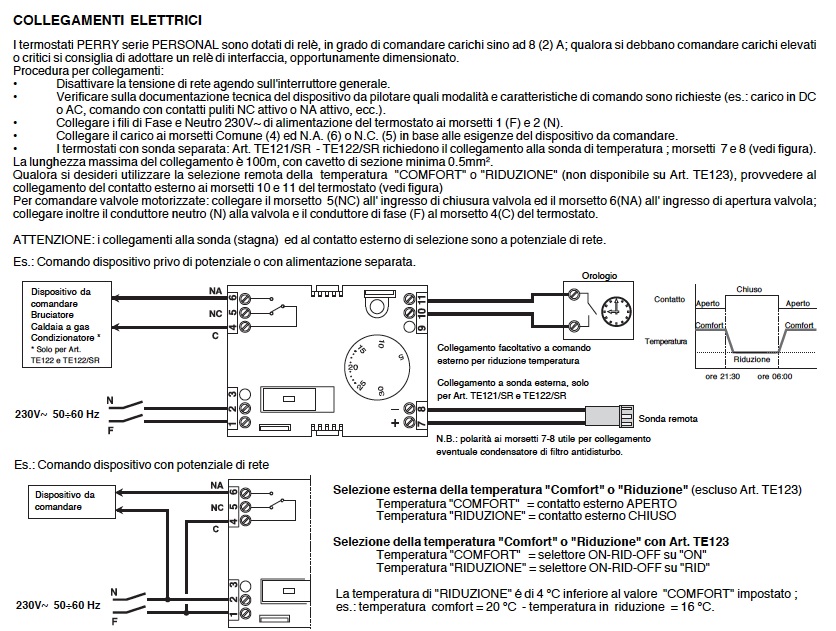 michael.amighetti Inserita: 23 novembre 2022 Autore Segnala Inserita: 23 novembre 2022 23 ore fa, Stefano Dalmo ha scritto: Questo Perry di cui non hai messo il modello , l'alimentazione la prende da nero e blu? E il contatto lo chiude tra viola e grigio? Se ho capito bene e il lilla e grigio sono collegati tra C e NA. Sul relè a contatti puliti netatmo devi collegare nero e grigio . Il blu lo devi restare libero , nastralo . Non lo utilizzare altrimenti fa la botta . il modello dovrebbe essere il TP120 che ho indicato, metto anche uno schema elettrico che ho trovato, si l'alimentazione se ho capito giusto la prende da nero e blu e col viola porta la fase su COM mentre il grigio è su NA. quindi se ho capito bene se montassi direttamente il termostato netatmo (in foto il retro del termostato) che è già alimentato a batteria porto semplicemente il nero e grigio che comandano la valvola di zona, mentre in alternativa se voglio montare il relè che mi farebbe da ponte in modo da poter portare il termostato WiFi nella stanza che preferisco come collego i 4 fili con i 3 che ho in cassetta? dovrei collegare nero e marrone col nero che arriva in cassetta blu con blu e grigio con grigio?