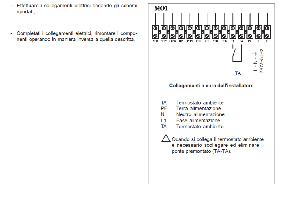 Francesco.chl Inserita: 30 agosto 2023 Segnala Inserita: 30 agosto 2023 Buongiorno @michael.amighetti Ho trovato questa vecchia conversazione e fatalità mi trovo esattamente nella tua stessa IDENTICA situazione. Io ho una casa a 4 zone con 4 termostati TE120: 1) giorno; 2) notte; 3) interrato A; 4) interrato A. Per qualche motivo però i due termostati per le zone interrato A e interrato B comunque accendono entrambi i radiatori per tutto il seminterrato. In ogni caso vorrei sostituire il termostato della zona interrato A. Detto ciò, volevo sapere se sei riuscito a risolvere ed, eventualmente, come. In allegato: La foto con i collegamenti del termostato che vorrei sostituire. Lo schema dei collegamenti della mai Caldaia RIELLO Domus. Preciso che per ogni termostato il cavo che va al morsetto 6 (NA) ha un colore diverso per ogni termostato, ma i collegamenti restano i medesimi. Cheers, FC