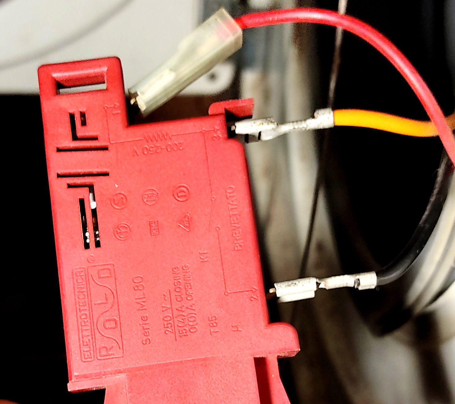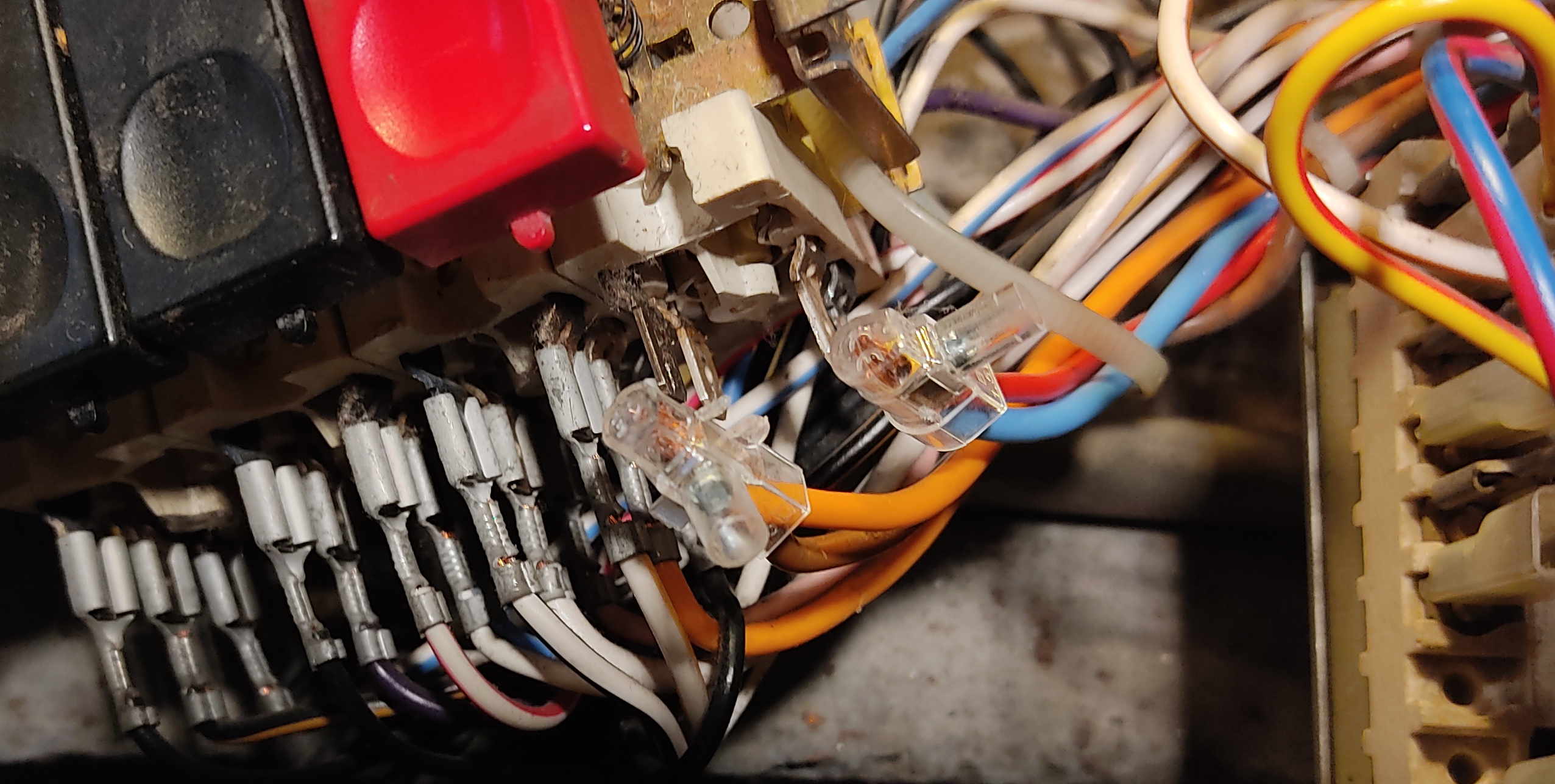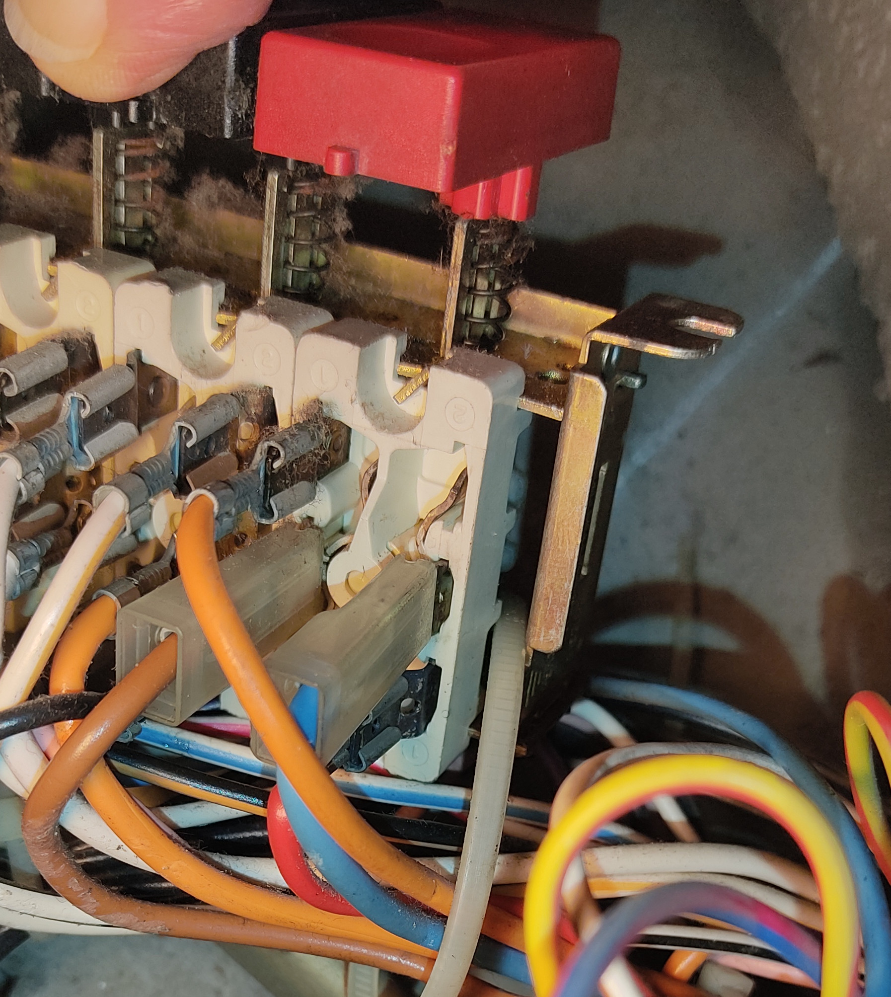 g.orlandini Inserita: 19 dicembre 2022 Autore Segnala Inserita: 19 dicembre 2022 2 hours ago, g.orlandini said: Grazie per il suggerimento. Quando torno a casa di mia madre, ci provo, bypasso l'interruttore e vedo se funziona. Solo che i morsetti dell'interruttore non sono a portata di mano, dovrò capire come smontare l'interruttore. Vi farò sapere. Se gli faccio ripartire anche questa Sangiorgio, mia madre sarà contentissima. Grazie a tutti Sono riuscito a smontare la pulsantiera. Credo che l'interruttore bipolare con pulsante ROSSO dell'accensione siano i 4 morsetti più a dx nella foto (anche se non sono allineati rispetto al pulsante). Per bypassarlo dovrei unire il polo 1 di sopra (ARANCIONE) con il polo 1 di sotto (MARRONE CHIARO) ed il polo 2 di sopra (BLU) con il polo 2 di sotto (ROSSO). Spero di non abusare della vostra cortesia (che già mi avete risolto il problema dell'altra lavatrice)