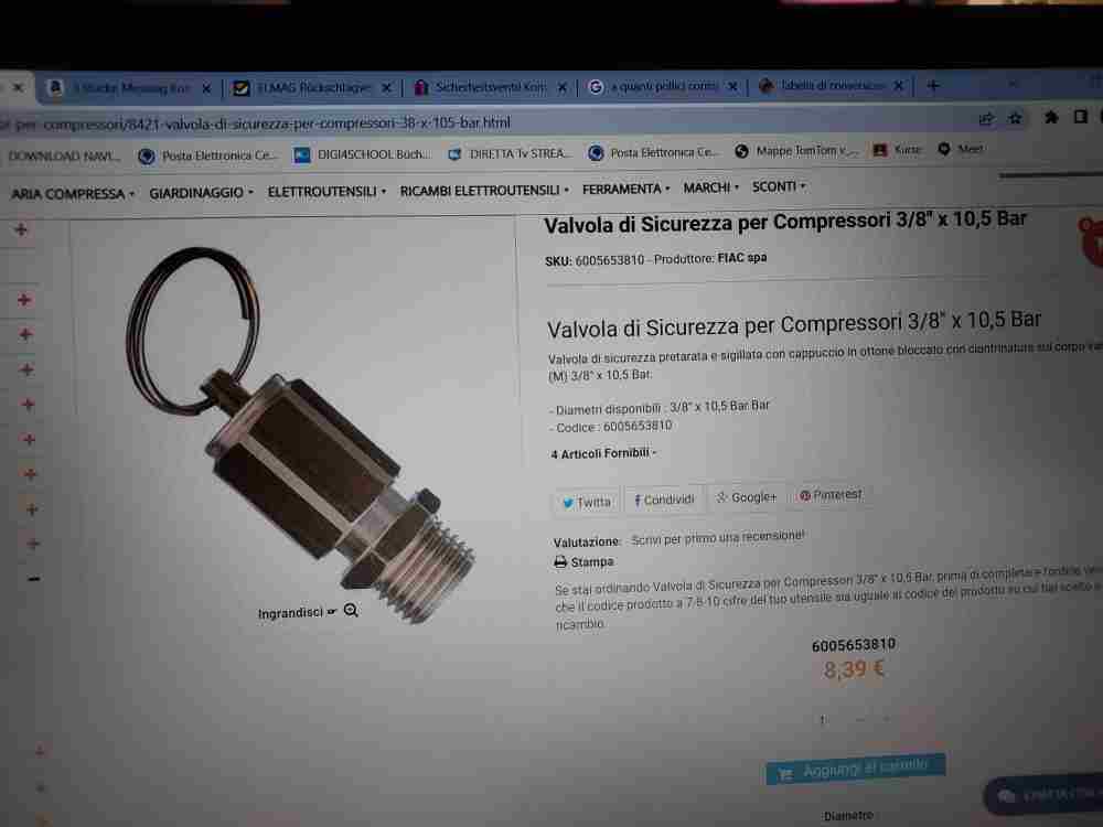 oreste22 Inserita: 24 febbraio 2023 Autore Segnala Inserita: 24 febbraio 2023 ciao Stefano scusami se ti rispondo solo ora. Io penso che quel dado col buco non sia altro che una valvola di sfiato che superati i 10,5 Bar si apre ,perche' il pressostato è tarato per 10 bar. Comunque ho scritto in Germania alla Grizzly Ditta costruttrice),che mi ha mandato il codice della valvola di non ritorno .Ho visto però che non c'è una foto disponibile sul loro sito ,ed non essendo sicuro di poterla restituire indietro gli ho chiesto se potevano inviarmi una foto del ricambio. La loro risposta ò stato non è disponibile .Perciò domani scendo in Italia a Udine a cercare una valvola di sfiato a 10,5 bar. Cosa ne peni tu ?