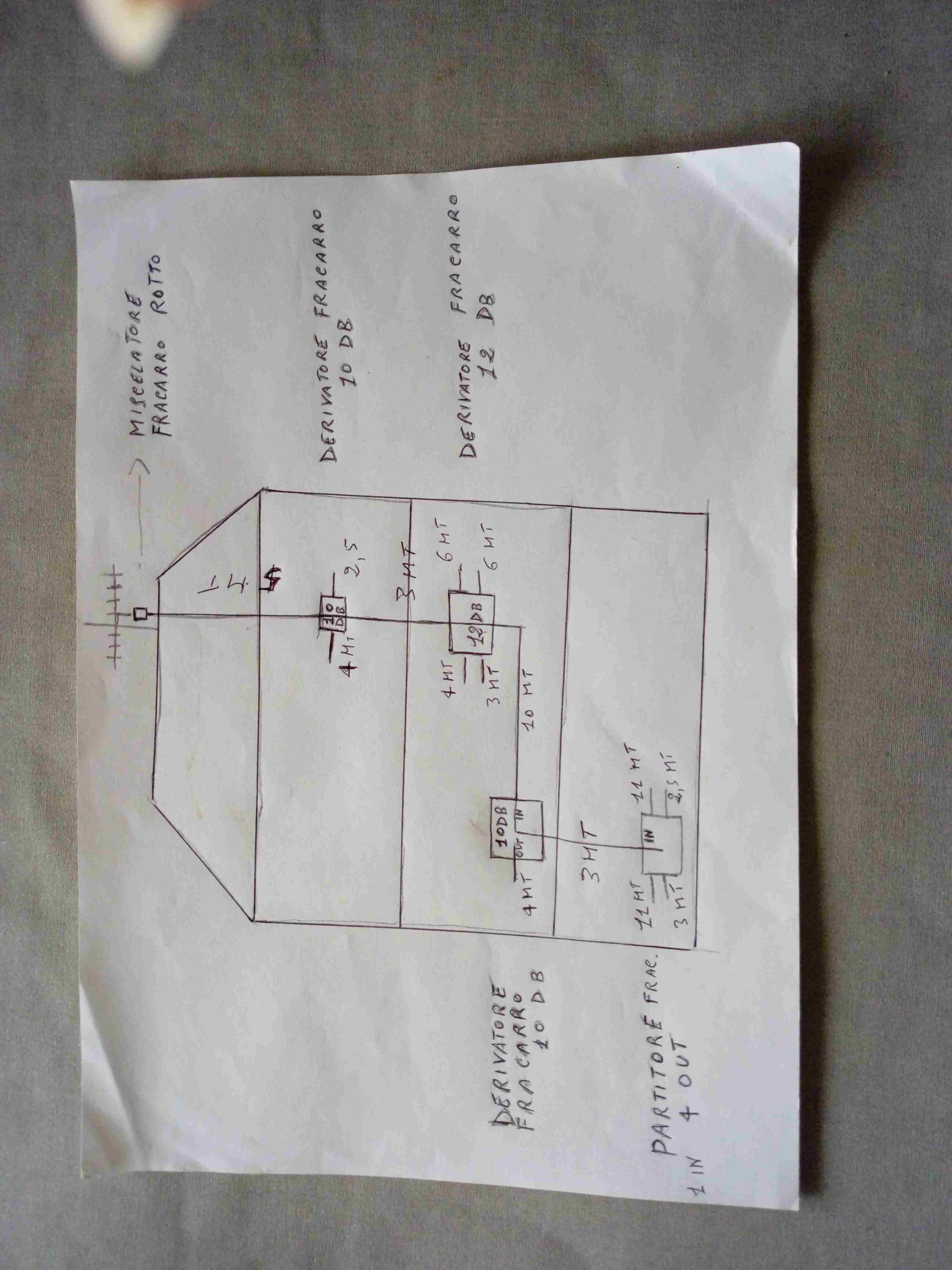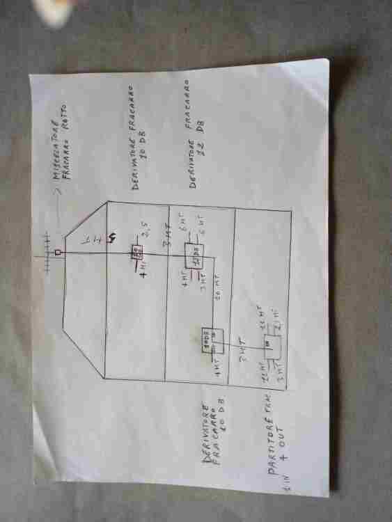 Pablo57 Inserita: 12 aprile 2023 Autore Segnala Inserita: 12 aprile 2023 Il 14/3/2023 alle 23:35 , Pablo57 ha scritto: Mio cugino è un discreto elettricista, ma non è un bravo antennista, abbiamo sempre ricevuto male, non ha saputo orientare bene neanche la parabola, quì c'è un alto livello di cooscenza, io sto imparando tante cose e col tuo aiuto e anche di altri sono convinto di poter realizzare un nuovo impianto per casa mia. Purtroppo devo aspettare a rientrare a casa, e non avrò molto tempo a disposizione, per cui era importante schiarirmi le idee su come agire affinchè anche tu possa indirizzarmi sulle cose giuste da fare. Riprendo la discussione dopo essere stato in Sardegna per breve periodo, ora posso fornire maggiori dettagli sull'impianto di casa, per prima cosa ho notato che i vicini di casa avevano tutti delle antenne a pannello però orientate in modo diverso dalla mia. Ho quindi orientato il pannello come gli altri, cioè col lato corto in verticale ma il segnale RAI era sempre scarso, allora ho provato a mettere un cavo diretto (lungo circa 20 mt), dall'antenna alla TV e i canali RAI si ricevevano molto bene. Ora considerando l'intero impianto, allego la mappa che ho ricavato dalla casa, anche le foto, misure dei cavi, derivatori Fracarro n. 3, + 1 partitore finale, n. 11 prese B Ticino, ti chiedo come si possano amplificare solo i segnali RAI, visto che quelli Mediaset, come avevi detto tu si ricevono anche senza antenna.