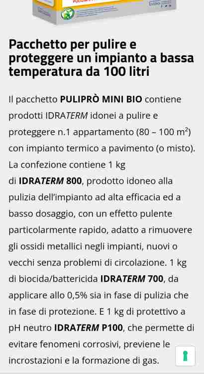 robertice Inserita: 10 marzo 2023 Segnala Inserita: 10 marzo 2023 Ci sono più modi, si possono usare prodotti a scarico zero che metti nell'impianto e basta Oppure usare dei prodotti con una pompa a pressione con serbatoio e in una mezza di giornata si fa Personalmente uso il pulipro bio in kit che comprende pulizia e mantenimento In percentuale si fa girare con l'acqua tecnica per massimo un mese, da fare a inizio/fine stagione così con l'acqua calda e per una ventina di giorni pulisce meglio Poi si risciacqua circuito per circuito e si mette la restante parte di mantenimento. Per 80/100 metri il kit costa circa 80 euro...diciamo 140 al cliente Una giornata per mettere e poi sciacquare... e il conto puoi farlo da solo