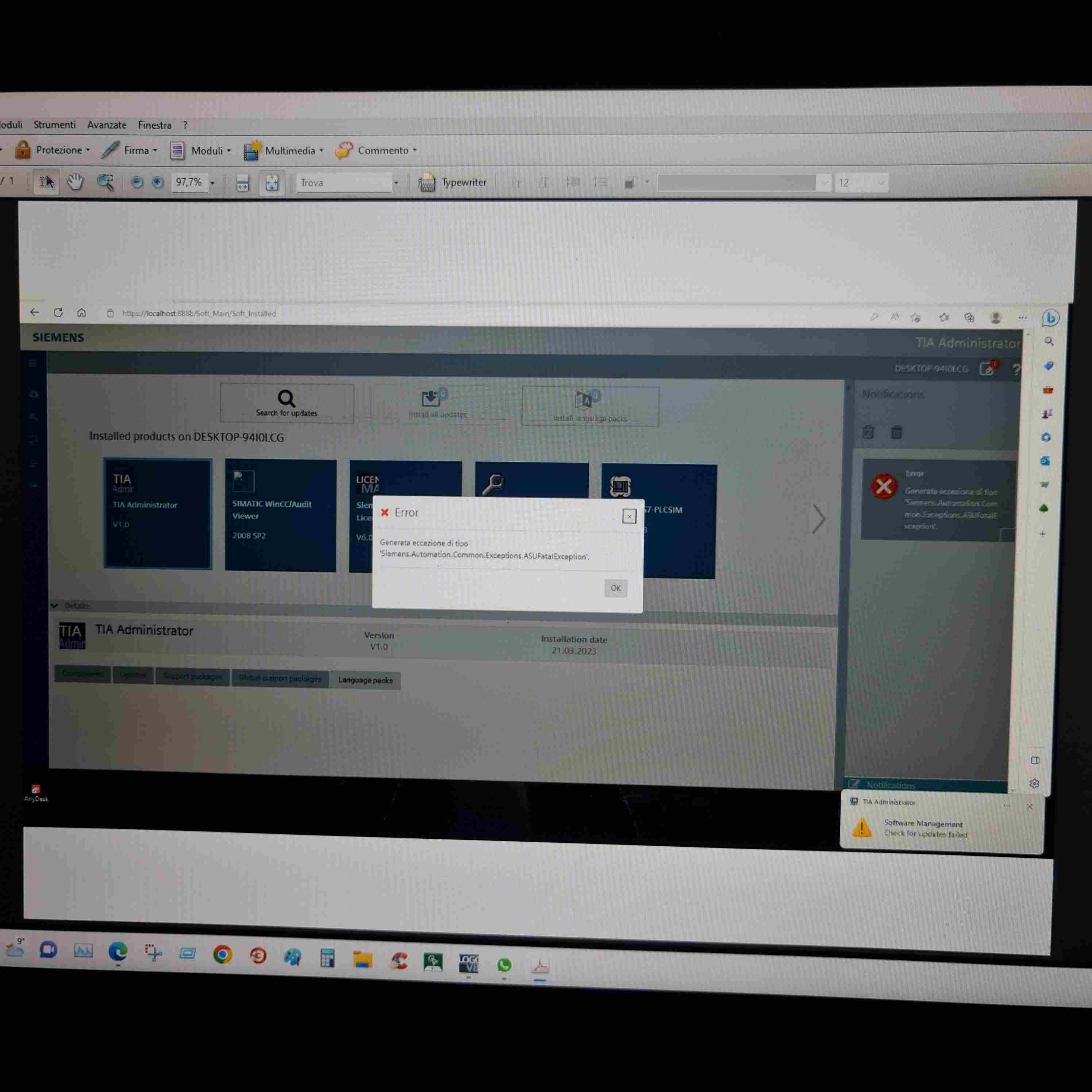 Project75 Inserito: 21 marzo 2023 Segnala Inserito: 21 marzo 2023 Buona sera, ho installato tia portal v18 e volevo scaricare il pacchetto per tradurlo in italiano, solo che con Tia administrator mi da un errore e non me lo fa scaricare. Qualcuno ha avuto lo stesso problema è può aiutarmi. In allegato foto dell'errore.