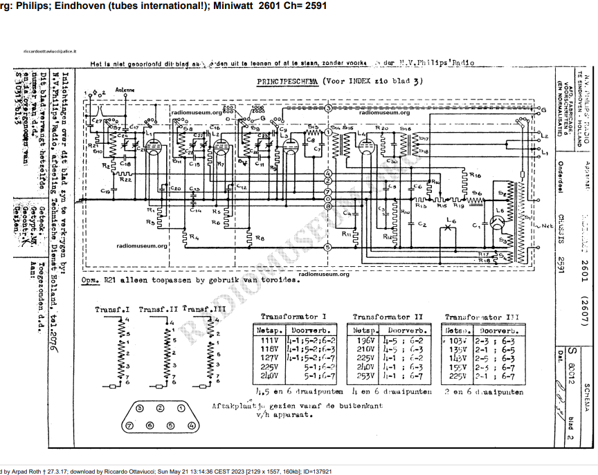 Riccardo Ottaviucci Inserita: 16 giugno 2023 Autore Segnala Inserita: 16 giugno 2023 2 ore fa, NovellinoXX ha scritto: Il condensatore variabile quante sezioni ha? 3 tutte uguali? non l'ho ancora aperto. Comunque la rivelazione è effettuta dalla griglia del triodo. Ho trovato una descrizione del circuito però è in olandese e in jpg.Dovrei farlo leggere con un OCR e poi usare un traduttore