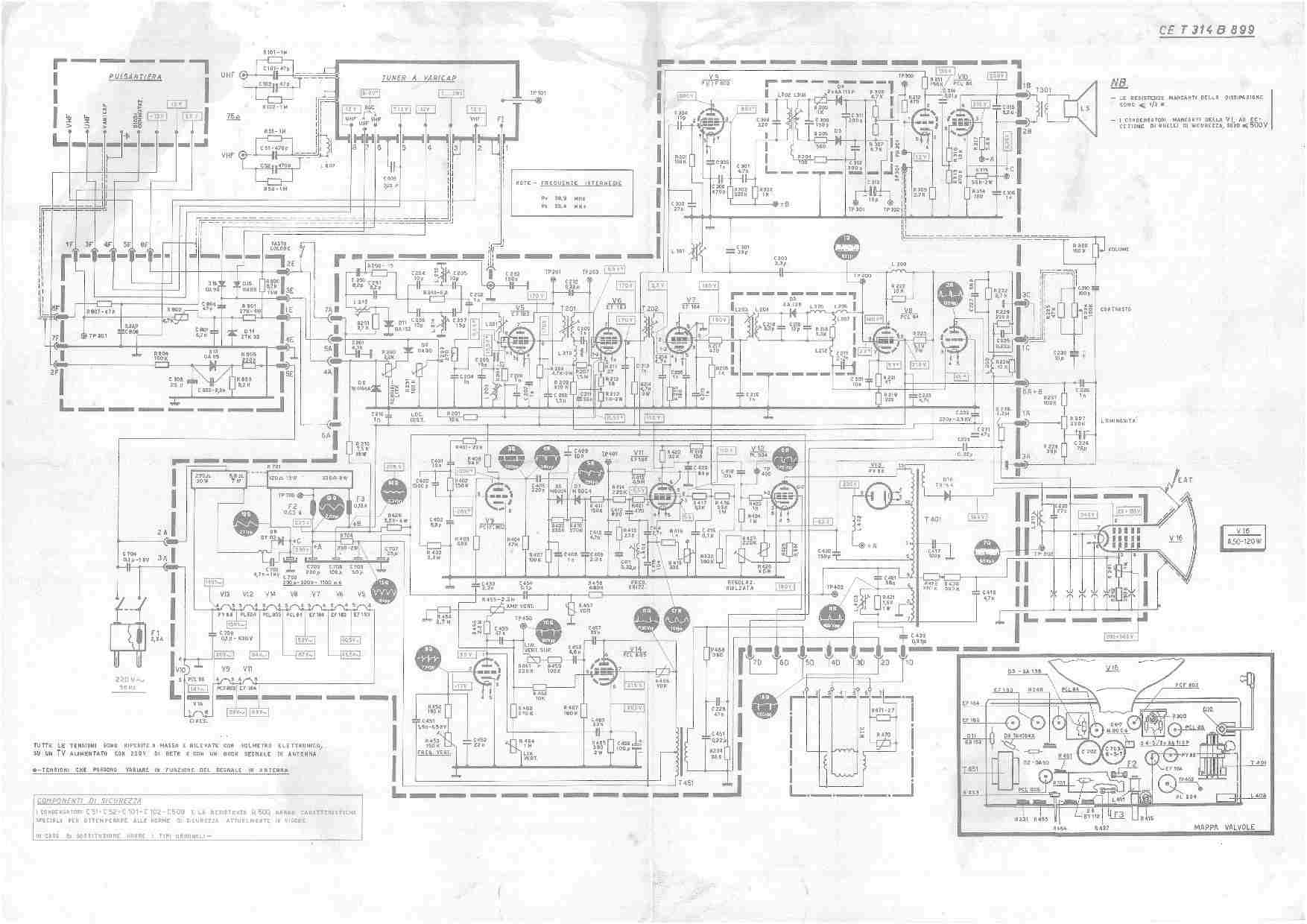 frapenas Inserito: 17 giugno 2023 Segnala Inserito: 17 giugno 2023 (modificato) Buongiorno a tutti, ho recuperato questa bella CGE 20" del 1972, valvolare, semplicemente per una questione affettiva in quanto era la tv dei miei nonni di quando ero piccolo. Ho provato l'accensione e seppur non sempre si accende, il quadro si illumina completamente, si sente l'audio ma sintonizzando le immagini scorrono velocemente in diagonale, quindi penso manchi di sinronismo. In ogni caso non ho insistito e ho smontato tutto per sotituire come prima cosa tutti gli elettrolitici e dare un'occhiata generale. Sto aspettando che mi arrivino. Nel frattempo chiedo una cosa. Tentando le accensioni le volte che non si accendeva emetteva un forte fischio, non sibilo, una cosa tipo il rumore di quando si lascia sgonfiare un palloncino. Tantando diverse volte accendendo e spegnendo poi partiva senza emettere alcun rumore strano. A cosa poteva essere dovuto? Condensatore o EAT in dispersione? Grazie in anticipo per il supporto, un saluto, Francesco Modificato: 8 luglio 2023 da Riccardo Ottaviucci corretto titolo