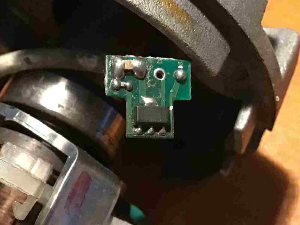 Ipotizzo che questa polvere abbia raggiunto anche questo sensore in quanto vicinissimo al collettore( probabilmente sente la corrente) e abbia messo in corto circuito i pin e/o i fili di collegamento non dando più un segnale out.