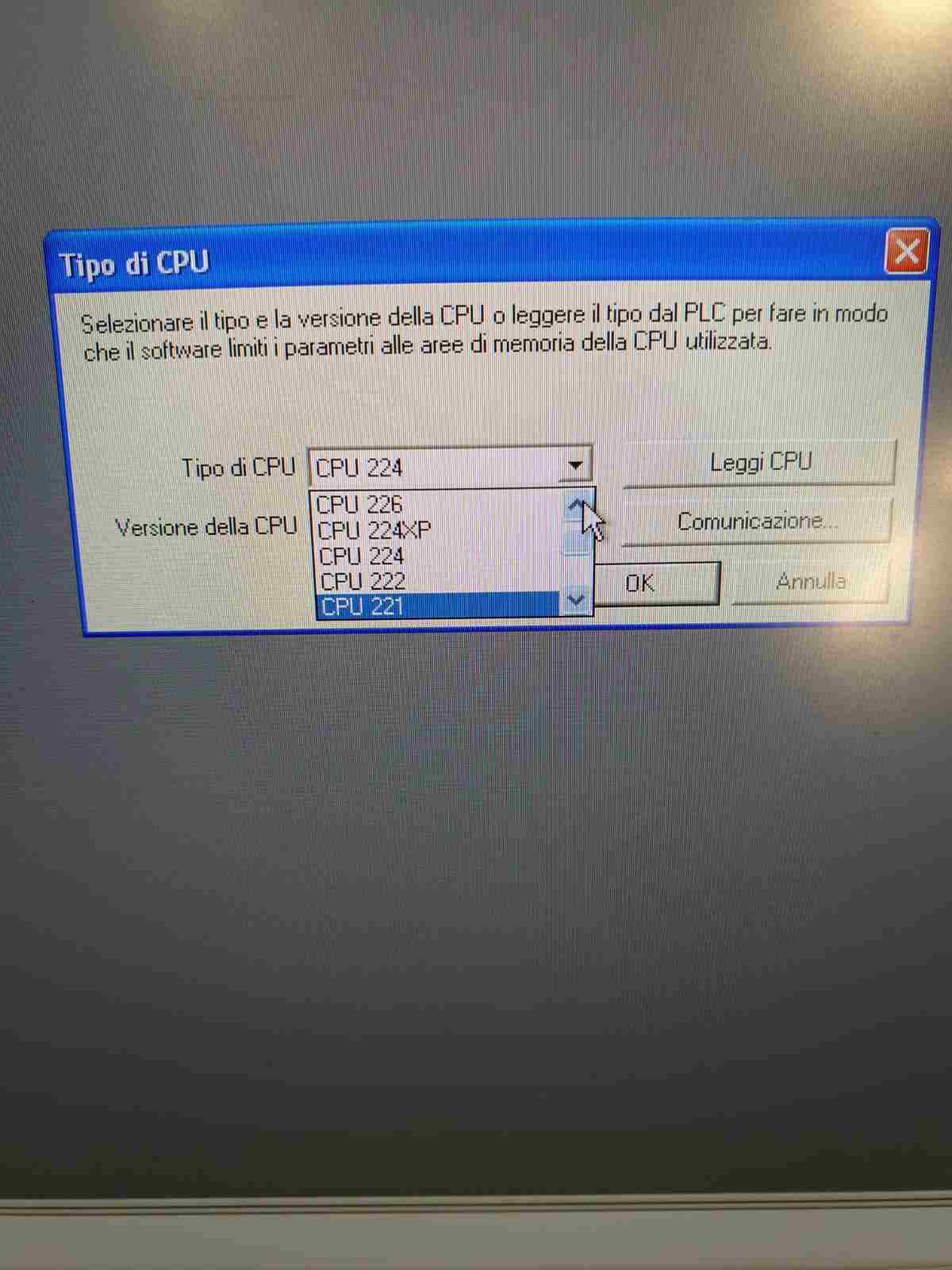 dina_supertramp Inserita: 27 ottobre 2023 Segnala Inserita: 27 ottobre 2023 Stai facendo un progetto nuovo da zero? Se si quando selezioni "CPU Type" dovresti avere 224. Se non lo trovi clicca sul pulsante "Read CPU Type..." dovrebbe riuscire a leggerlo Manda anche una foto della CPU Ora non ho microWin sottomano, vedo di recuperarlo al volo e fare due prove.