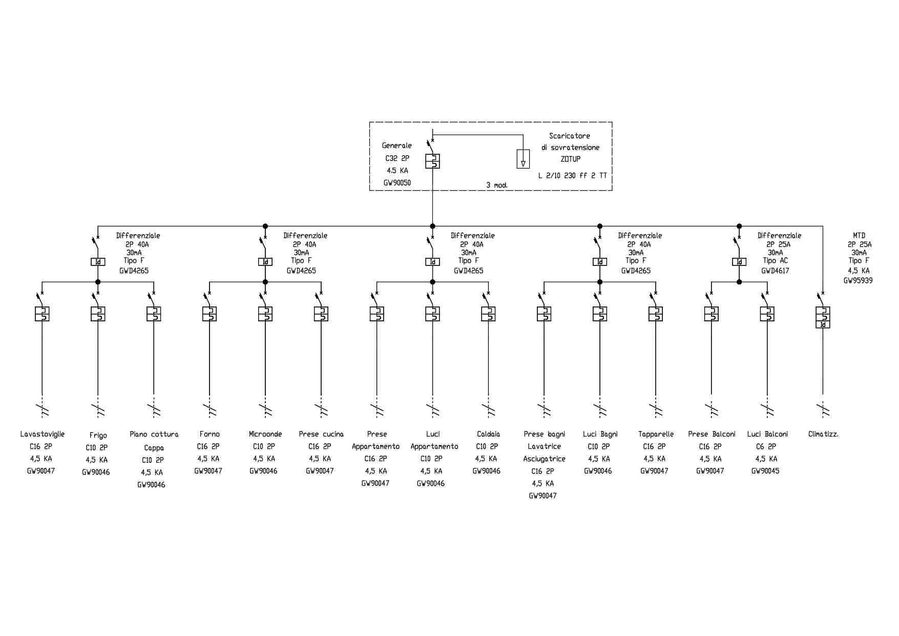 Termico Inserito: 30 ottobre 2023 Segnala Inserito: 30 ottobre 2023 Buongiorno, sto facendo dei lavori a casa e rivedendo anche l’impianto elettrico. Sostanzialmente nei bagni e cucina l’ho rifatto ex nuovo, mentre per il resto dell’appartamento è stato ampliato con l’aggiunta di qualche presa e sostituiti tutti i cavi, e vorrei rifare anche il quadro elettrico. Nella foto allegata si può vedere come l’ho concepito, ho usato la protezione su due poli perché mi trovo in una zona di Roma in cui la società fornitrice (Acea) arriva con fase-fase. Vi chiedo gentilmente qualche suggerimento in merito, in particolar modo sul tipo di differenziali che ho previsto, tipo AC-A-F. Vi ringrazio anticipatamente.