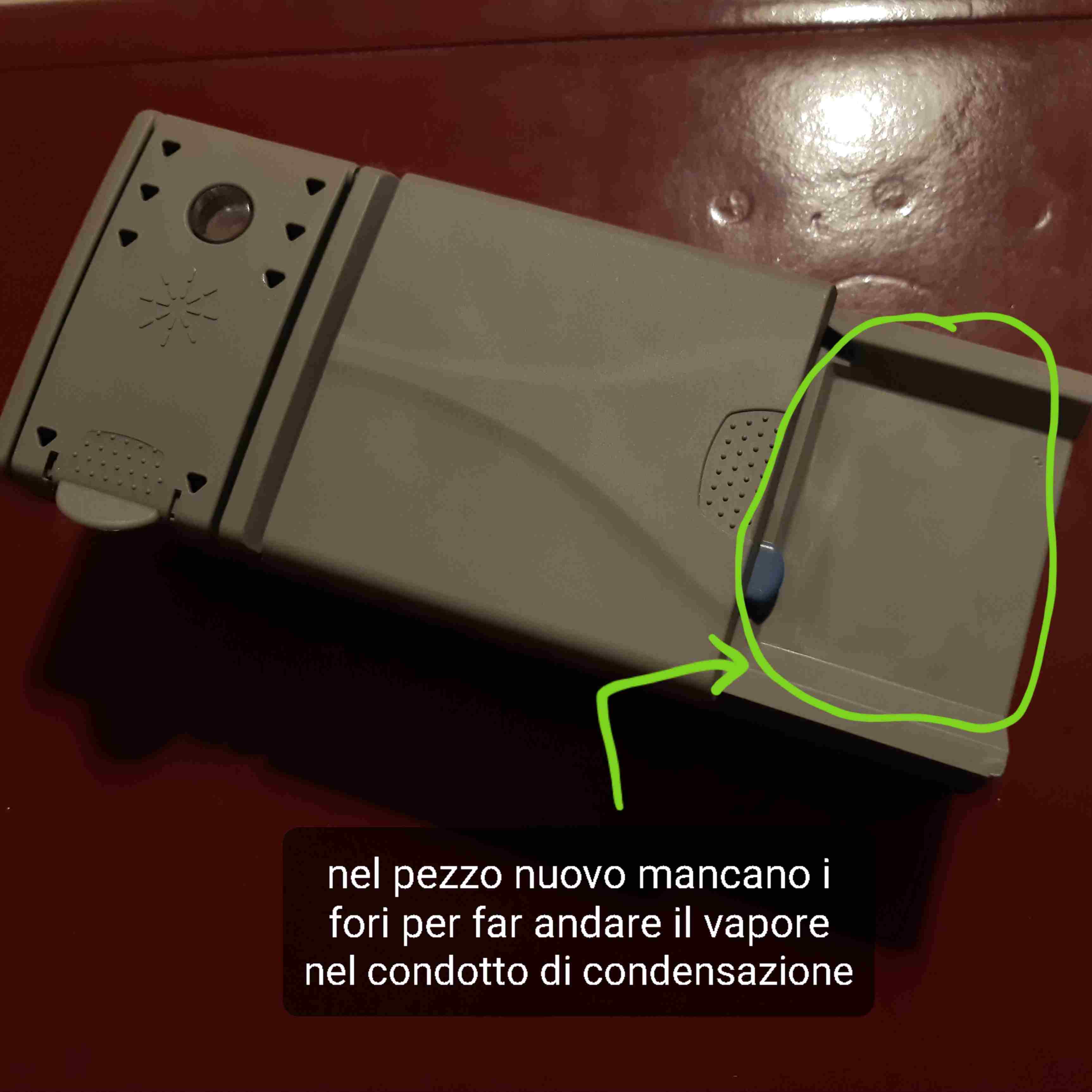 2 - ipotizzando che non risolvessi con il venditore, se facessi alcuni fori al nuovo dosatore, dove li ha il "vecchio" e fresasdi l'apertura per il tubo di condensazione, potrebbe funzionare?