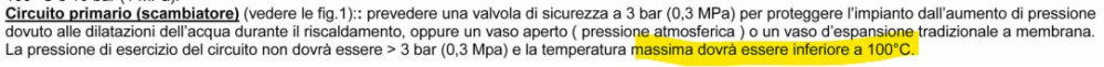 Marco22P Inserito: 14 gennaio 2024 Segnala Inserito: 14 gennaio 2024 Buonasera, sono nuovo. Ho cercato sul forum ma non riesco a trovare niente a riguardo. Ho una stufa a pellet idro per riscaldamento termosifoni. Ho comprato uno scaldabagno termoelettrico 80Lt della BAXI (Must +) con serpentina all'interno in modo da sfruttare il calore dell'acqua nell'impianto a circuito chiuso della stufa. Il dubbio è il seguente: Ho bisogno di installare delle valvole di zona per il circuito che andrà dentro la serpentina del termoelettrico? Mi è venuto questo dubbio perché non vorrei che l'acqua che passa dentro la serpentina sia troppo calda e dia problemi al boiler. La stufa manda acqua calda fino a 80°, ma difficilmente (quasi mai) arrivo a quelle temperature, di solito mi tengo dai 65° ai 75°. Inoltre leggendo il manuale del boiler vi riporto il seguente screen: Leggendo il manuale sembra che non ci sia bisogno, perché basta che non supero i 100°. Sarebbe fantastico qualche chiarimento! Grazie mille a tutti, Marco.