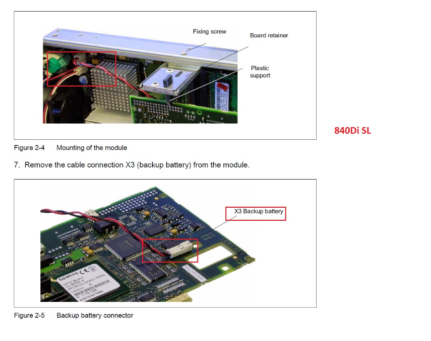 dina_supertramp Inserita: 16 gennaio 2024 Segnala Inserita: 16 gennaio 2024 (modificato) Hai ragione.... Leggi qui, parla del 840Di Alarm 2100 in Sinumerik 840d sl - 266908 - Industry Support Siemens If you have 840Di - You need to open PCU 50.3 & check MCI board. You will find battery connected to MCI board for SRAM data backup Please note, do not replace or remove battery unless & until you have correct battery in your hand, till then you can keep your system ON, do not switch off power supply of system. You need to replace battery (in power OFF condition) quickly less than 10 minutes so that SRAM data will not get lost. Modificato: 16 gennaio 2024 da dina_supertramp