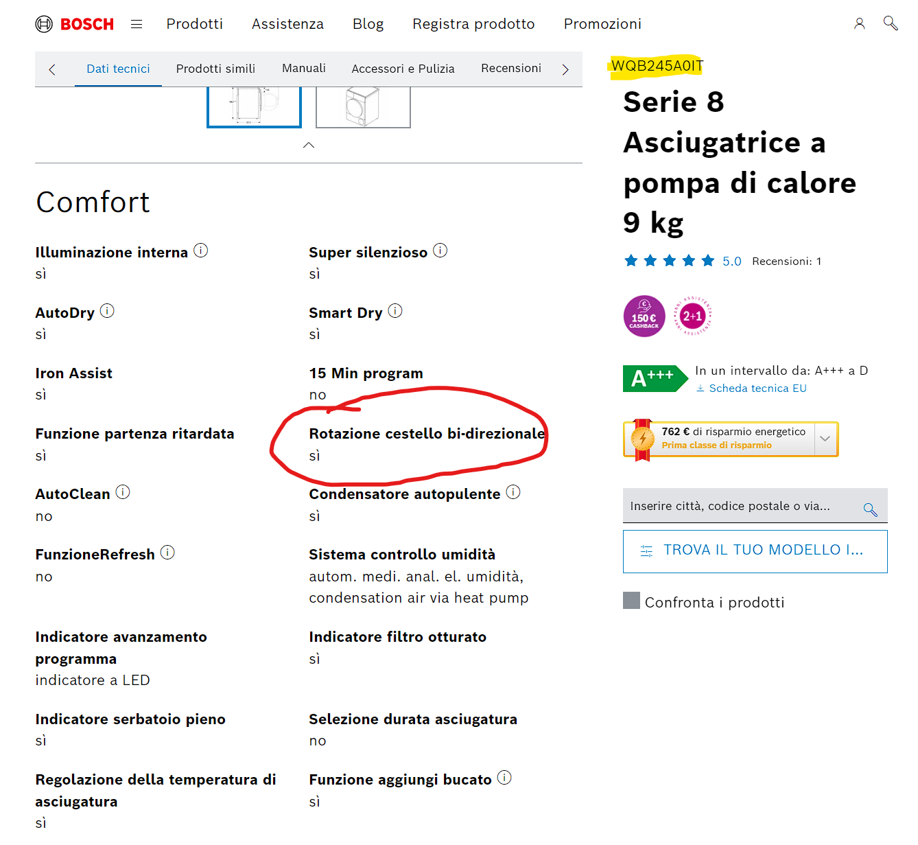 paffa88 Inserita: 26 gennaio 2024 Autore Segnala Inserita: 26 gennaio 2024 ho letto per bene le specifiche dell'asciugatrice bosch che avevo valutato e sembra avere il cestello con rotazione in entrambi i sensi, forse hanno aggiunto questa funzionalità nelle nuove serie 8 anche perchè in effetti nelle "vecchie" dice espressamente rotazione in unica direzione mentre in queste "cestello rotazione bidirezionale". Hanno pure programma apposito per le lenzuola dove si vantano che vengano perfette, oltre alla funzione vapore che mi pare pubblicizzi anche miele. Ti credo sulla parola che le miele sono migliori, è risaputo ma a questo punto la differenza rimane il condensatore che sebbene autopulente puù dara grattacapi. 300€ non sono tantissimi ma se fosse davvero pure a rotazione bidirezionale me li terrei in tasca onestamente. Un ultimo consiglio? almeno per quanto riguarda la bidirezionalità di rotazione?