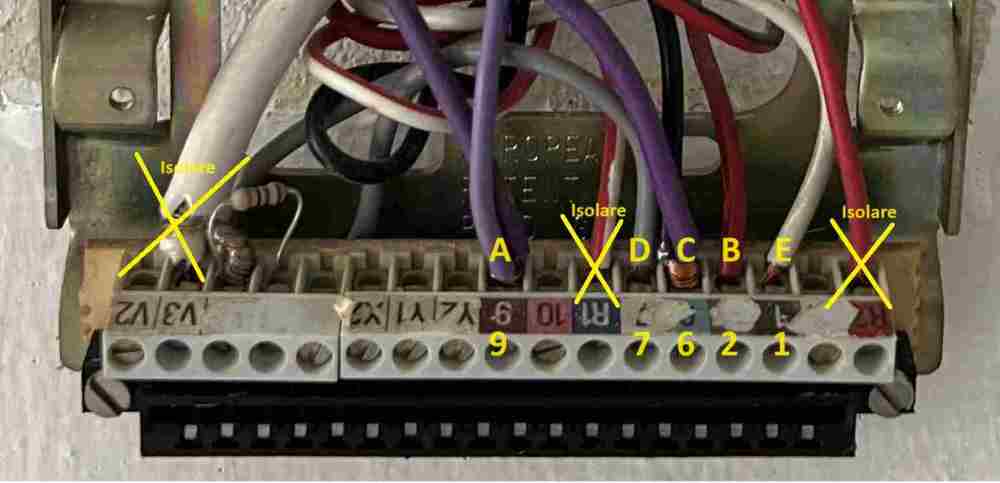ROBY 73 Inserita: 9 febbraio 2024 Segnala Inserita: 9 febbraio 2024 8 ore fa, Damiano Basso ha scritto: Mi è stato detto che posso sostituirlo solo con un citofono "meccanico" e non elettronico, è corretto? Non capisco di che tipo sia questo Comelit 104A. Vai tranquillo, basta che lasci il selettore in "M" (chiamata Meccanica). 4 ore fa, Damiano Basso ha scritto: anche se non mi tornano i conti.. nella foto che ho postato i fili mi sembrano tanti... più che 5 Infatti, non ti servono tutti, te ne bastano cinque. I due fili su R1 ed R2 li devi isolare in modo che non vadano a toccarsi tra loro e nessun altro filo / morsetto, servivano per alimentare il vecchio videocitofono. Anche il cavo video coassiale (cavo bianco sulla sinistra) lo devi isolare, taglia prima il filo centrale e poi la calza (o viceversa, non cambia nulla), l'importante è che non tranci il cavo "di brutto". Anche per gli altri fili, li scolleghi uno alla volta e man mano li isoli in modo che non si tocchino tra loro E quindi gli altri cinque fili che ti sono rimasti li colleghi così: (Clicca sopra l'immagine o aprila in un'altra finestra / scheda del monitor per ingrandirla) https://media.leroymerlin.it/media/1772439 Naturalmente sui morsetti A e C dove ci sono due fili per ogni morsetto, in teoria (ma anche in pratica o molto a fatica dove ti uscirà una porcheria), non ci stanno su quelli del nuovo citofono; quindi, prendi due morsetti volanti tipo mammut o forbox (che nasconderai tranquillamente nella scatola di fondo) e fai due giunzioni con due spezzoni di filo che entrano rispettivamente sui morsetti A e C, intendo così: Facci sapere come va