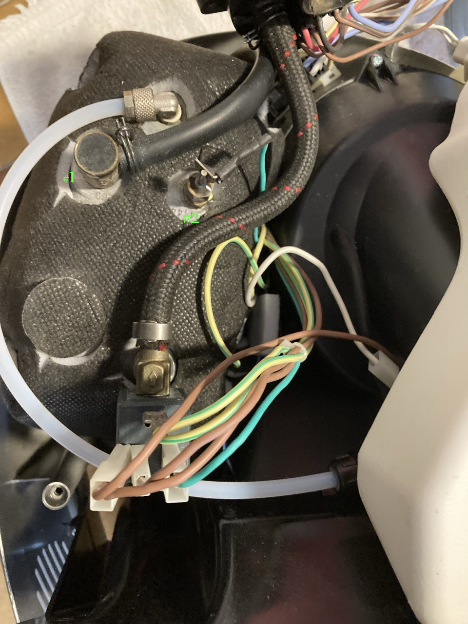 s0nny Inserito: 11 febbraio 2024 Segnala Inserito: 11 febbraio 2024 Buondi, possiedo un Polti Lecoaspira Intelligent 2.0. Fino ad ora la macchina ha sempre funzionato bene, tranne per un problema di calcare che otturava l'elettrovalvola, per cui ho dovuto smontare la caldaia, ripulirla completamente, come anche il cursore e la molla dell'elettro valvola (oltre ad una doverosa "sgridata" all'utilizzatore abituale per non aver usato acqua distillata). Ha funzionato per piu' di un anno senza problemi, poi ha avuto una perdita attraverso la valvola di sovra pressione e finiva attraverso il tubicino sul pavimento, dando un errore "E1", ovvero "La scheda elettronica ha rilevato un’anomalia riguardante la mancanza acqua in caldaia". Ho cambiato la valvola di sovra pressione (#1) e per un po' e' andata, ma poi il problema si e' ripresentato. Il mio prossimo passo sara' nel sostituire il sensore di temperatura (#2), ma e' un tentativo, non ho la certezza che funzionera'. Ogni consiglio e' ben accetto.