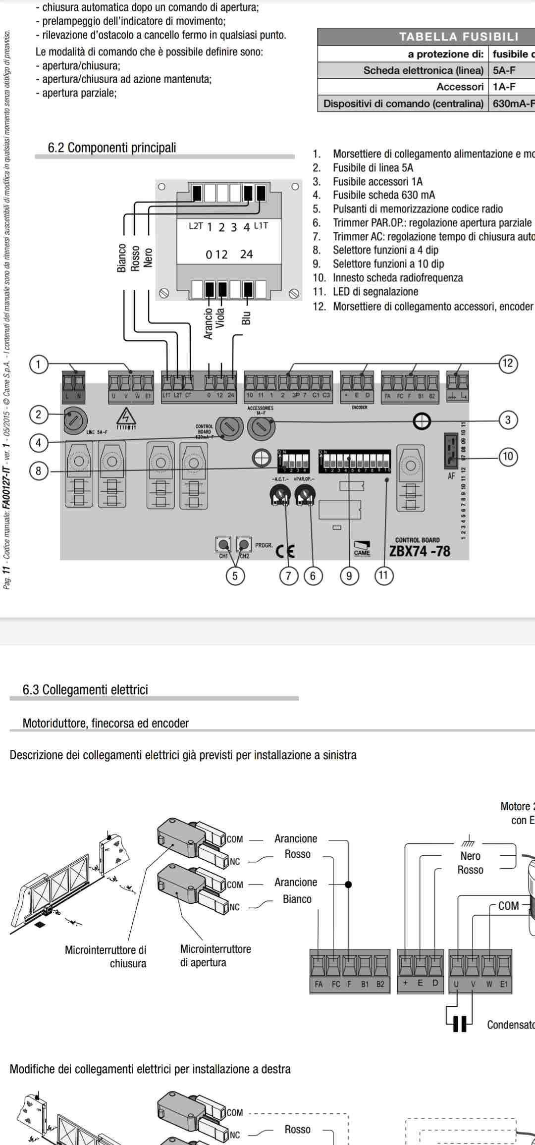 reka Inserita: 14 febbraio 2024 Segnala Inserita: 14 febbraio 2024 hai messo un estratto con i finecorsa, le fotocellule came nelle schede si collegano ai morsetti C*.