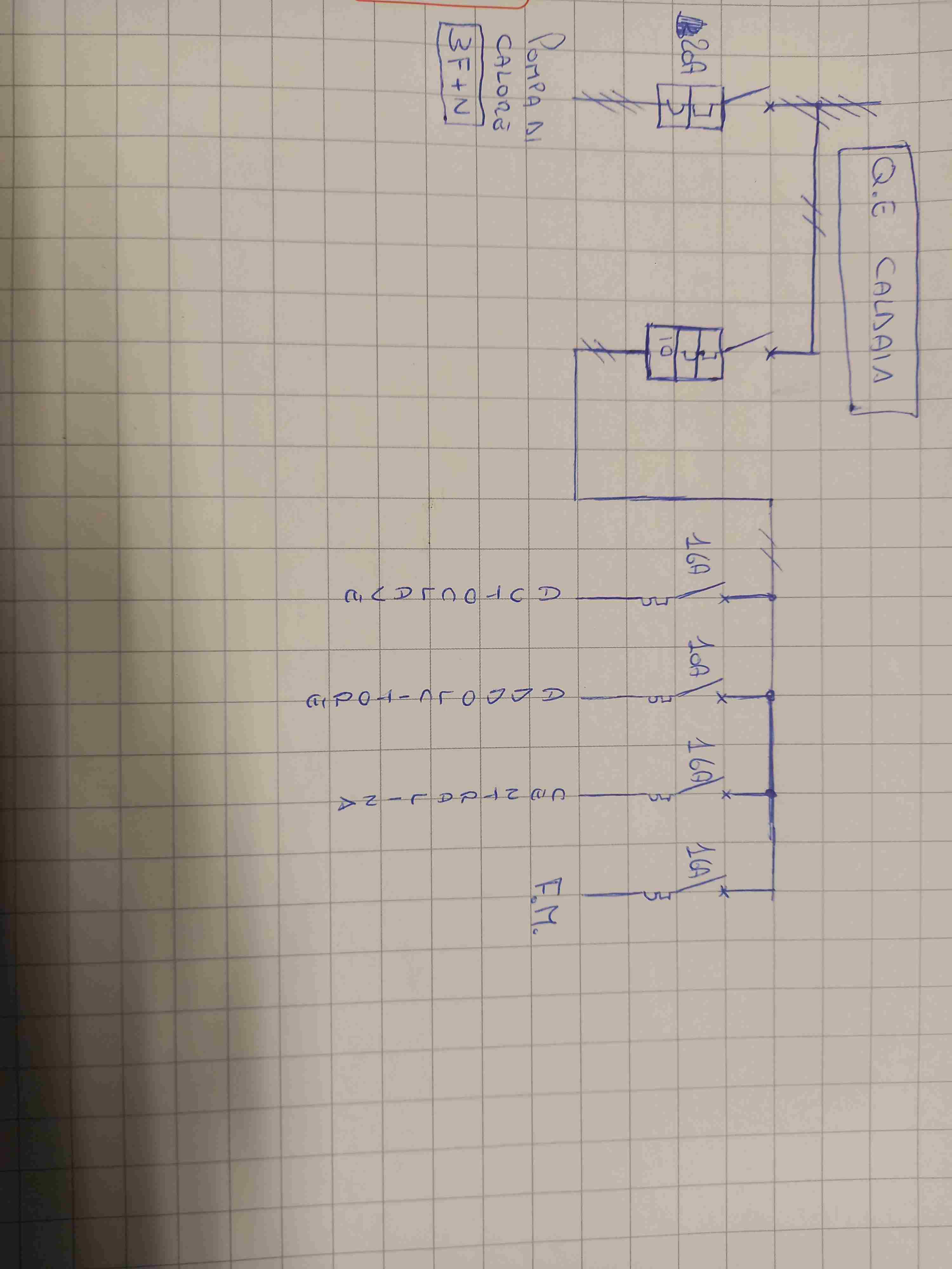 Bandu Inserita: 19 febbraio 2024 Autore Segnala Inserita: 19 febbraio 2024 8 ore fa, ROBY 73 ha scritto: Ma sei tu l'impiantista, oppure sei l'utente finale o entrambe le figure? Perché il differenziale a monte del magnetotermico? E chi protegge il differenziale da eventuali cortocircuiti e/o sovraccarichi? Da quanti Ampere è il magnetotermico? A parte il grave errore del filo grigio al posto del blu sul neutro, ma.... Ma la pompa funziona? Se funziona, come fa a funzionare appunto con sole due fasi? C'è un quadro, un inverter che gestisce la pompa o il collegamento è diretto, magari un avviamento stella / triangolo o cos'altro? Ed il neutro a cosa servirebbe se la pompa è solo trifase? Buongiorno, si l'impiantista sono io. Ho messo il differnziale per proteggere la linea e il termico lo montato a valle all'interno del quadro(dovrei invertire)? condivido lo schema dell'impianto. A valle dei differnziale da 2 poli ho tutti i termici dei vari utilizzatori, non sono stato a scriverli. Per quanto riguarda la pompa, si funziona gli arriva tutto sia le 3 fasi che il neutro. Ho solo questo ronzio nel quadro proveniente da questo interruttore differnziale puro ma penso sia dovuto al mio errore passando il filo neutro dal morsetto sbagliato. Per il colore usato ho utilizzato il grigio solo per quanto riguarda il quadro, dovuta alla mancanza di filo del 6mm di colore celeste.