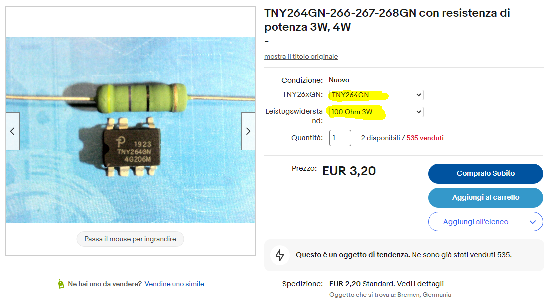 Nik-nak Inserita: 21 marzo 2024 Segnala Inserita: 21 marzo 2024 Se vuoi avere la certezza che la causa del problema è il chip TNYxxx, collega tutti i cavi alla scheda, accendi la macchina, AVENDO CURA DI NON TOCCARE PARTI SOTTO TENSIONE E DI ISOLARE BENE LA SCHEDA, e poi con un phon per capelli scalda il chip sospettato , e vedi se la macchina si spegne.