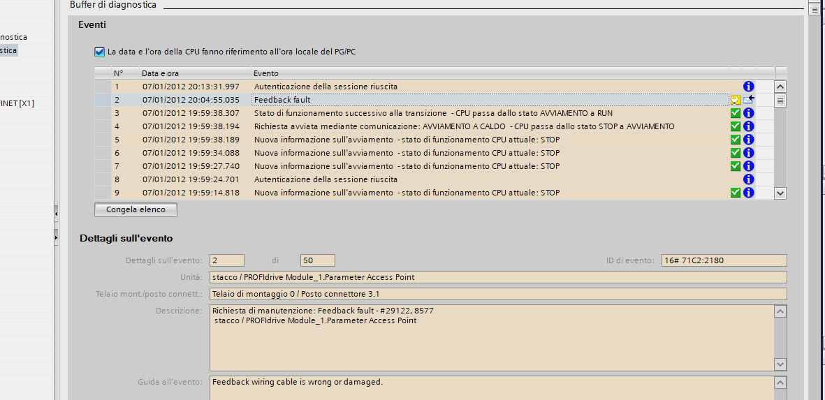 In allegato trovate una foto della diagnostica dove appare un Id di evento come posso visualizzare questo evento nella mia logica programmabile??