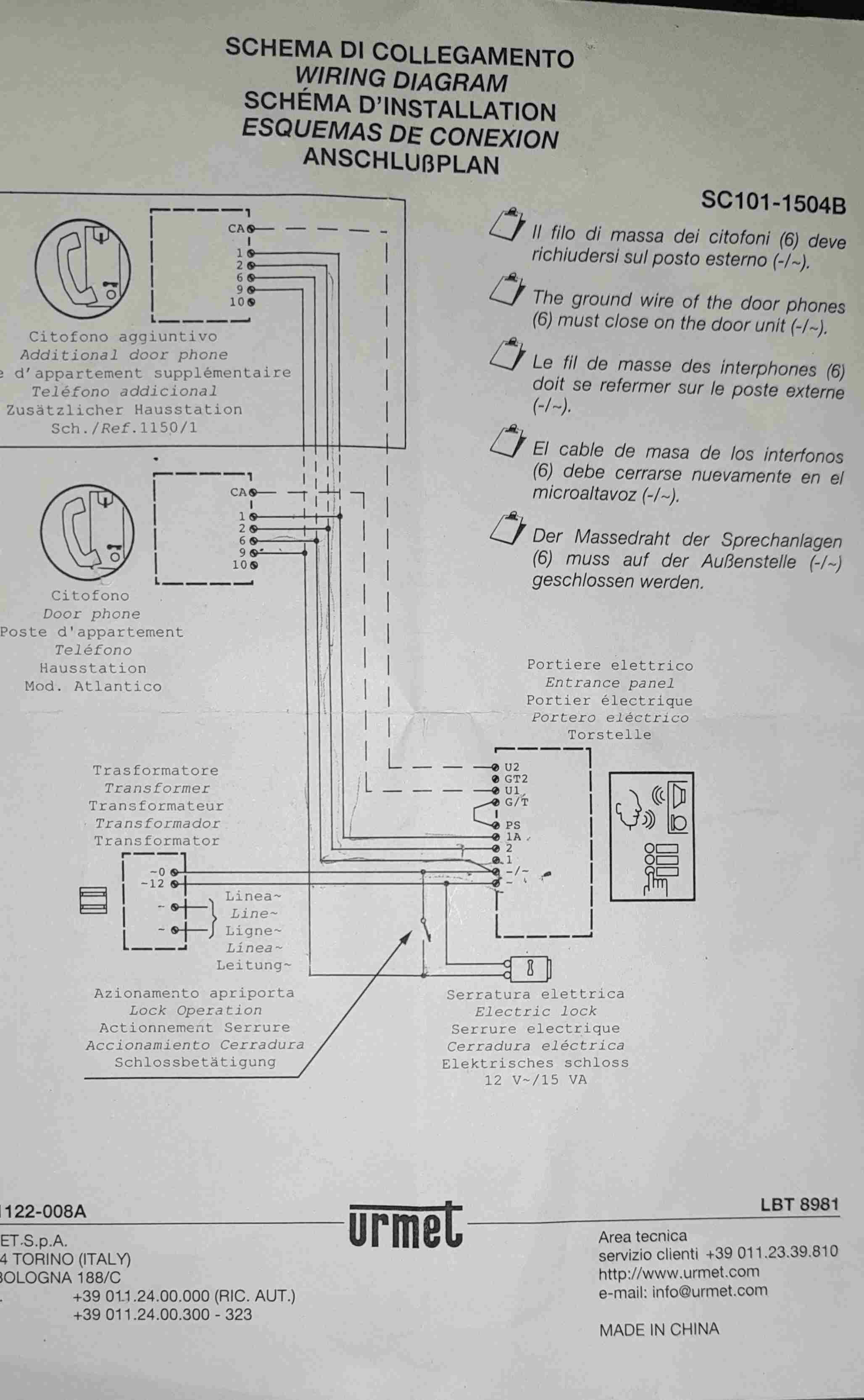 domenico migliaccio Inserito: 27 maggio 2024 Segnala Inserito: 27 maggio 2024 (modificato) Salve Sto installando un kit citofono urmet, funziona tutto tranne la chiamata ho provato come da una precedente discussione anche a collegare il morsetto U1 da posto esterno con CA citofono Urmet 1150 anche se lo schema lo porta tratteggiato quindi non dovrei collegare, se non per optional con altro citofono che non è presente nell' impianto. Alla fine mi ritrovo collegati 6 morsetti. Grazie per le risposte che mi darete. Modificato: 27 maggio 2024 da Livio Migliaresi inserito link