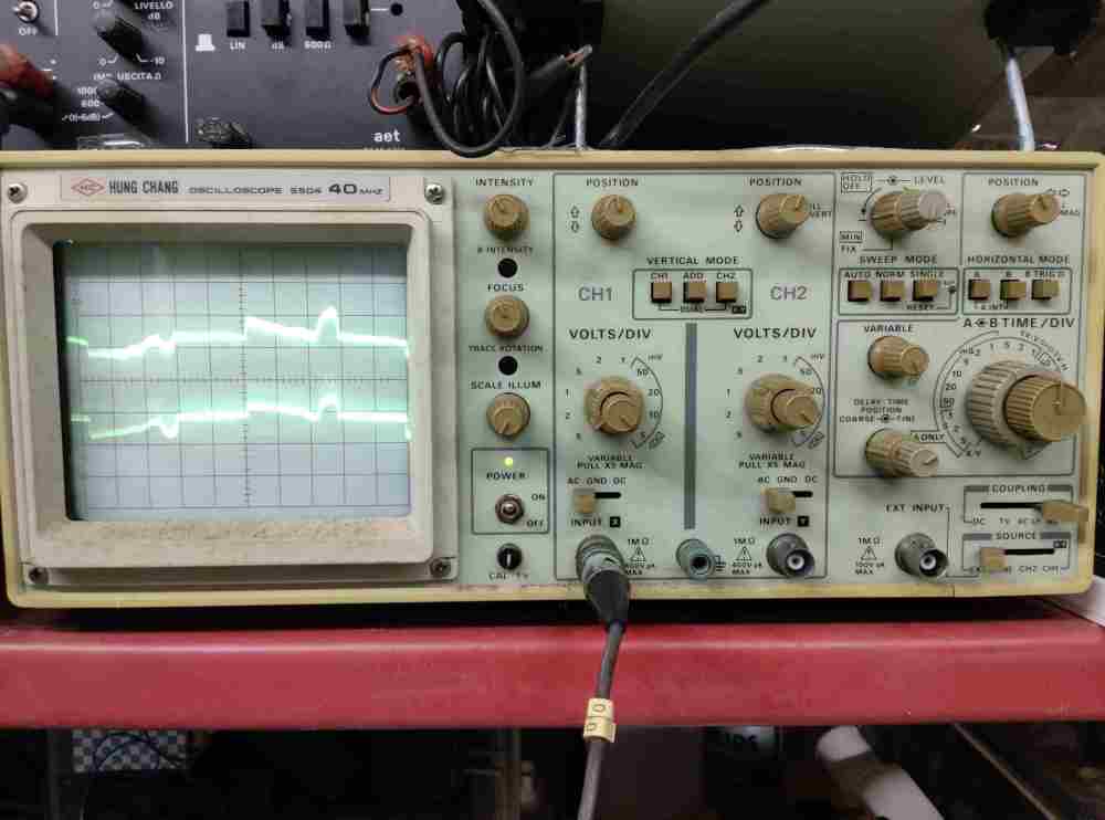 martusi Inserita: 29 luglio 2024 Autore Segnala Inserita: 29 luglio 2024 (modificato) Non è stato facile riprendere il mio oscilloscopio dopo circa 30 anni di inutilizzo, meno male che funzionava ancora! L'ho collegato in uscita ai due rami che vanno ai blocchi di MOSFET, prima ho provato il ramo n.2, quello che non mi ha dato mai problemi, allego forma d'onda. Il bello è arrivato quando ho collegato il ramo n.1, quello che bruciava i MOSFET. Infatti appena ho dato tensione l'oscilloscopio ha iniziato a friggere e la resistenza a filo limitatrice è diventata rossa, ho staccato subito. Poi ho riprovato di nuovo con l'oscilloscopio sul ramo n.2, allego foto della forma d'onda che però mi sembra diversa. Spento tutto ho quindi misurato la resistenza ai capi delle due uscite e ho visto che il ramo integro n.2 segnava alcuni megaohm, mentre invece il ramo n.1 pochi kiloohm, evidentemente è in corto. Penso di avere trovato il danno. Spero presto di controllare in modo più approfondito tutti i componenti in questione, anche se lo avevo già fatto in passato, ma senza scollegarli dallo stampato. Modificato: 29 luglio 2024 da martusi