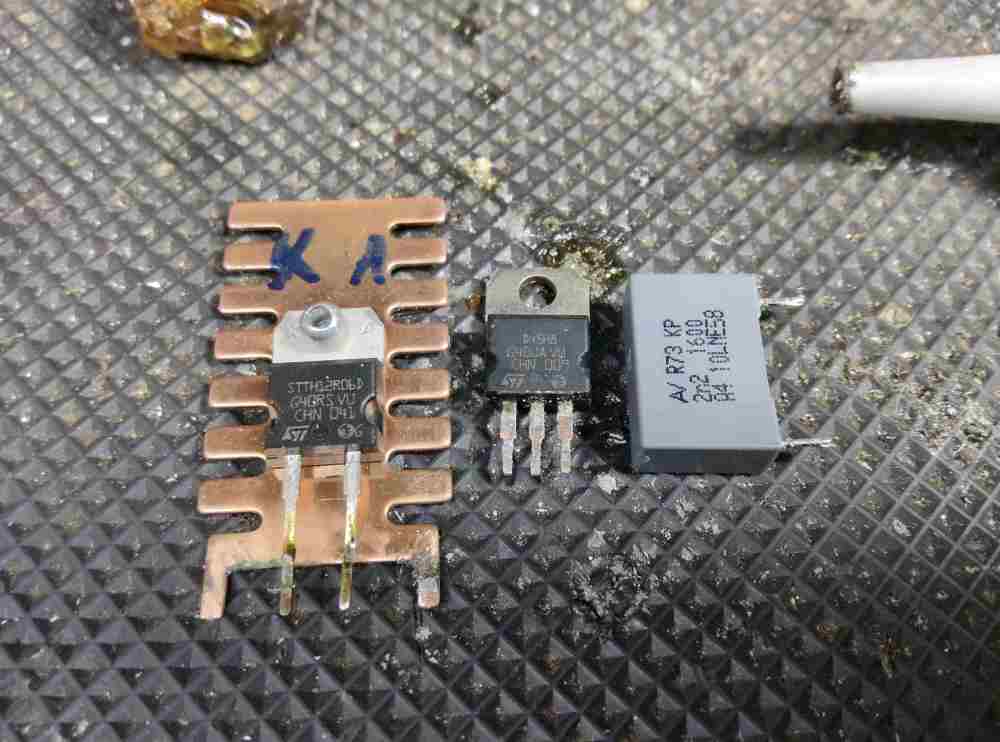 martusi Inserita: 27 luglio 2024 Autore Segnala Inserita: 27 luglio 2024 Dall'ultimo post sono riuscito a dedicare solo un pomeriggio e una giornata intera alla questione, ho controllato diversi componenti smontandoli, anche se già fatto in passato, e fatto alcune prove che riassumerò qui di seguito. Alcuni dei controlli effettuati: componenti vari in uscita, condensatori della 300V, circuito del rele e alcuni della schedina oscillatore (raschiandone l'impermeabilizzazione). Prove: accensione, dopo scollegamento della spira del trasformatore d'uscita collegata al circuito del rele, ma continuava a vibrare. Giorni fa però, scrivendo di altre cose, mi sono ritrovato a citare la nota frase "l'essenziale è invisibile agli occhi" del Piccolo Principe di Saint Expery, tornando alla saldatrice, ho pensato di avere trascurato quei componenti che si guastano sempre in questi casi e che stanno sempre in mezzo, i MOSFET. Riepilogando, inizialmente avevo sostituito il primo blocco da 4 su 8, poi di questi ne è risultato 1 guasto sostituito e poi riguastato che ho dimenticato di sostituire. Dopo ciò, ho cambiato LM317 che non stabilizzava più, ma senza mai ripristinare il MOSFET in questione. Ieri mi sono messo di buzzo buono e ho dedicato diverse ore allo smontaggio dell'aletta di raffreddamento e di tutti i suoi 8 MOSFET, un lavoraccio che evitavo, ma che andava fatto. Ho testato tutti gli 8 MOSFET scoprendone qualcuno dei 4 sostituiti in precedenza con comportamento dubbio. Senza MOSFET ho provato ad accendere la saldatrice, seguendo un iniziale consiglio di Livio Orsini, e ho notato che il rele non vibrava più, il danno dovrebbe quindi essere sul secondario, per sicurezza però ho deciso di sostituirli tutti. Al momento mi sono dovuto fermare, ma vi farò sapere appena ci rimetterò le mani, spero domani.
