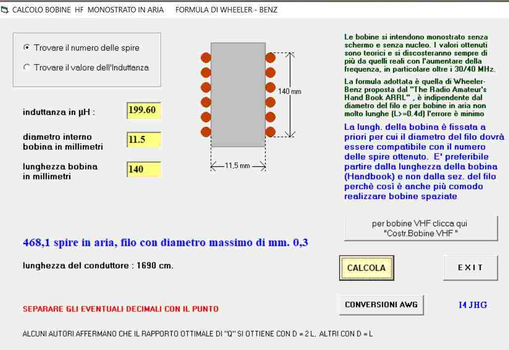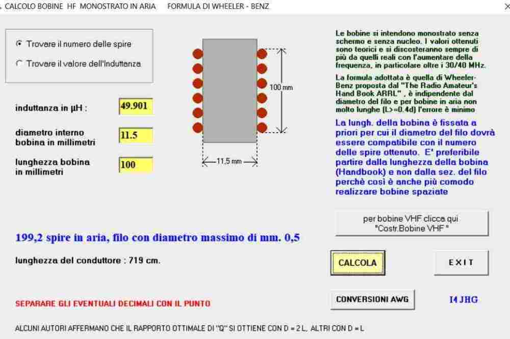 Interessante sono, in automatico, i dati costruttivi della bobina in aria