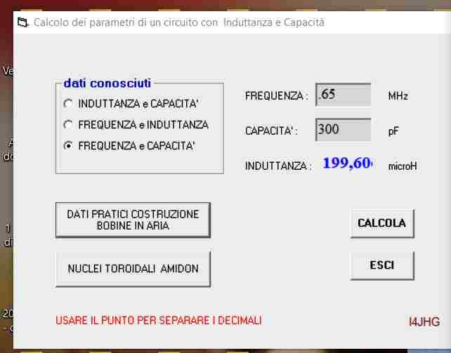 Di fatto solo oggi mi sono ricordato del Radioutilitario che m'ha indicato il Dott Cicala qualche anno fa. Cosi ho inserito i dati della bobina che sto sperimentando della quale posto i dati qui sotto.