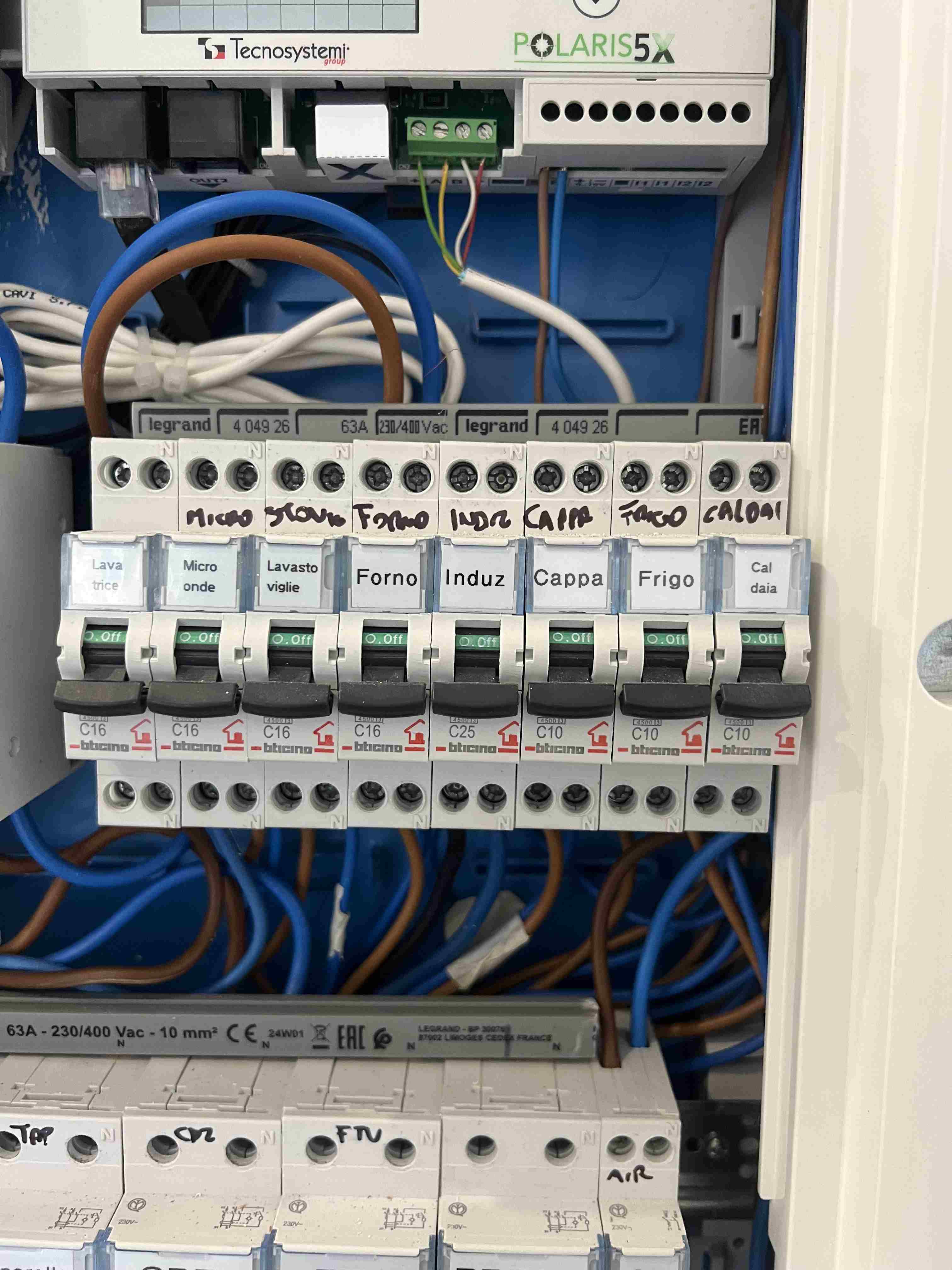luigi69 Inserita: 22 giugno 2024 Segnala Inserita: 22 giugno 2024 (modificato) Succede , ed esteticamente sembra che uno abbia fatto veloce senza curare il lavoro . Controlla che il pettine sia di suo con tutti i denti dritti . Per non forzare sui dentini di aggancio alla barra din degli interruttori, prova ad assemblare su un tavolo gli interruttori, in modo da forzarli con le dita mano a mano che chiudi . Nella foto che allego , si vede il difetto , anche perché l alimentazione l'ho fatta con i puntalini ( che essendo rigidi su un cavo da 6 mm2 , non consentono durante la chiusura di adattarsi al morsetto dell interruttore che deve anche stringere il pettine )( ps : il neutro in comune , la barretta di fase è interrotta all interno della protezione per potere collegare e bilanciare i carichi sulle fasi ) Modificato: 22 giugno 2024 da luigi69 Errori ortografia